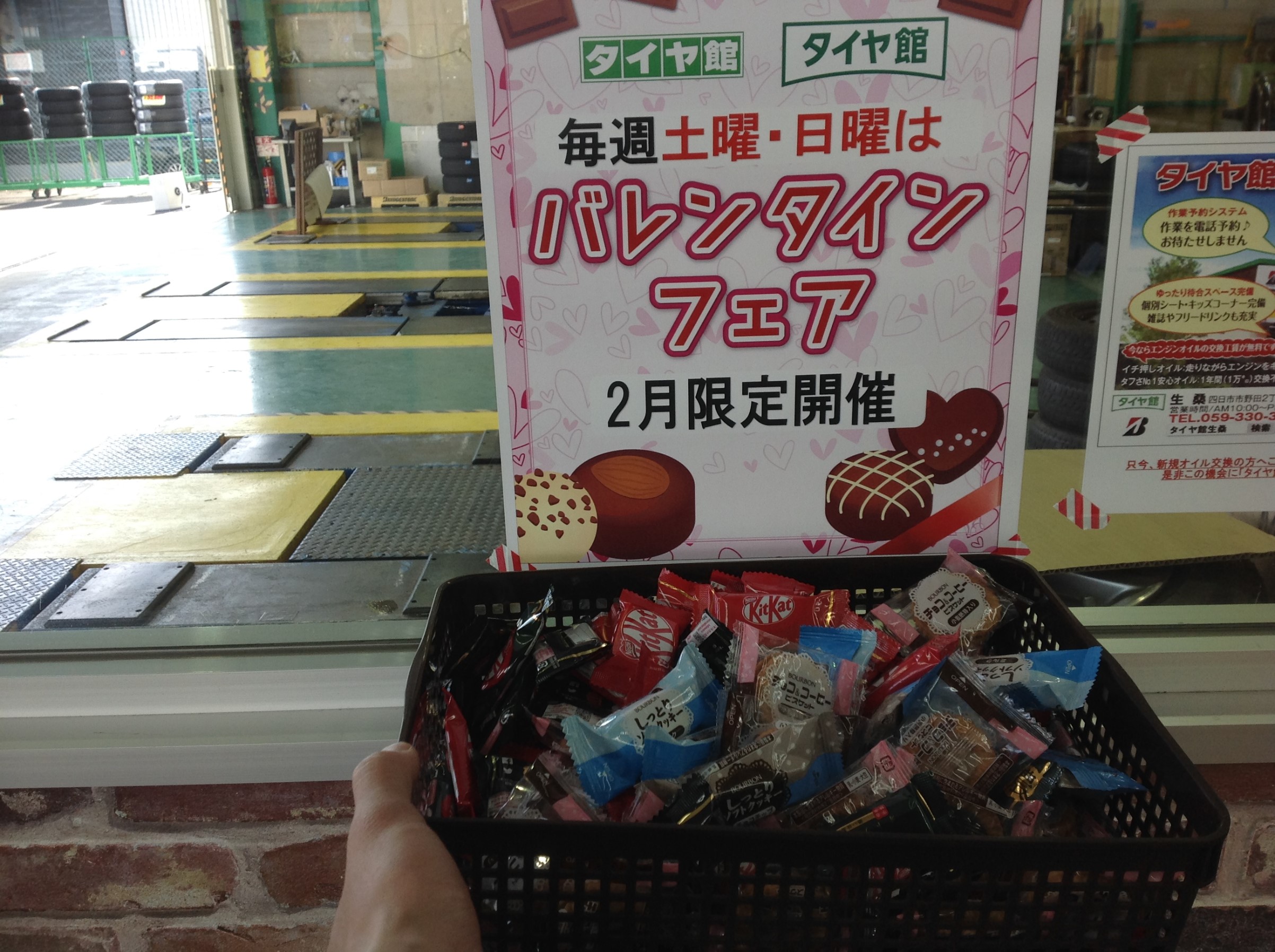 2月土日限定イベントバレンタインフェア!! ポスト 2019年2月2日 こんにちは タイヤ館生桑の中野です!! 只今2月土日限定イベント バレンタインフェア 開催中です!! ぜひお越しくださいませ!! カテゴリ:お知らせ