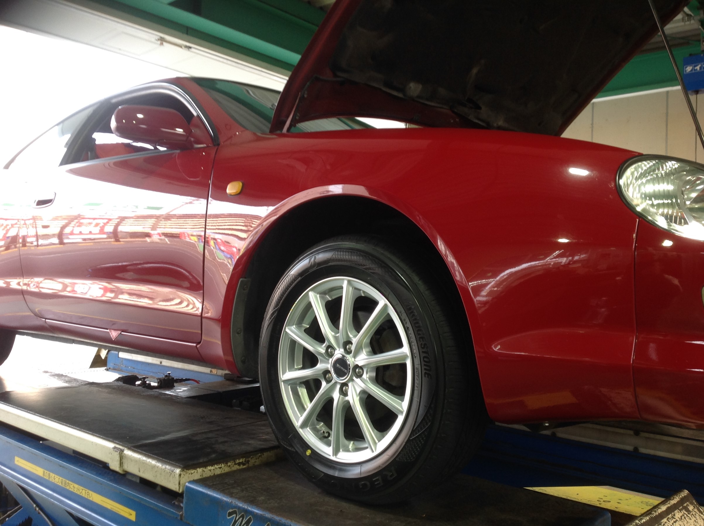 ☆ トヨタ セリカ タイヤ&ホイール交換 ポスト 2019年4月7日 四日市市、菰野町周辺にお住まいの皆様、こんにちは! 四日市のタイヤ専門店 タイヤ館生桑です! -------------------------------------------- タイヤは、レグノGR-XⅡと ホイールは、エコフォルムSE15との 組み合わせです。 ホイールのカラーが明るいので ボディカラーの赤色が際立ちますね!! 担当:丹羽