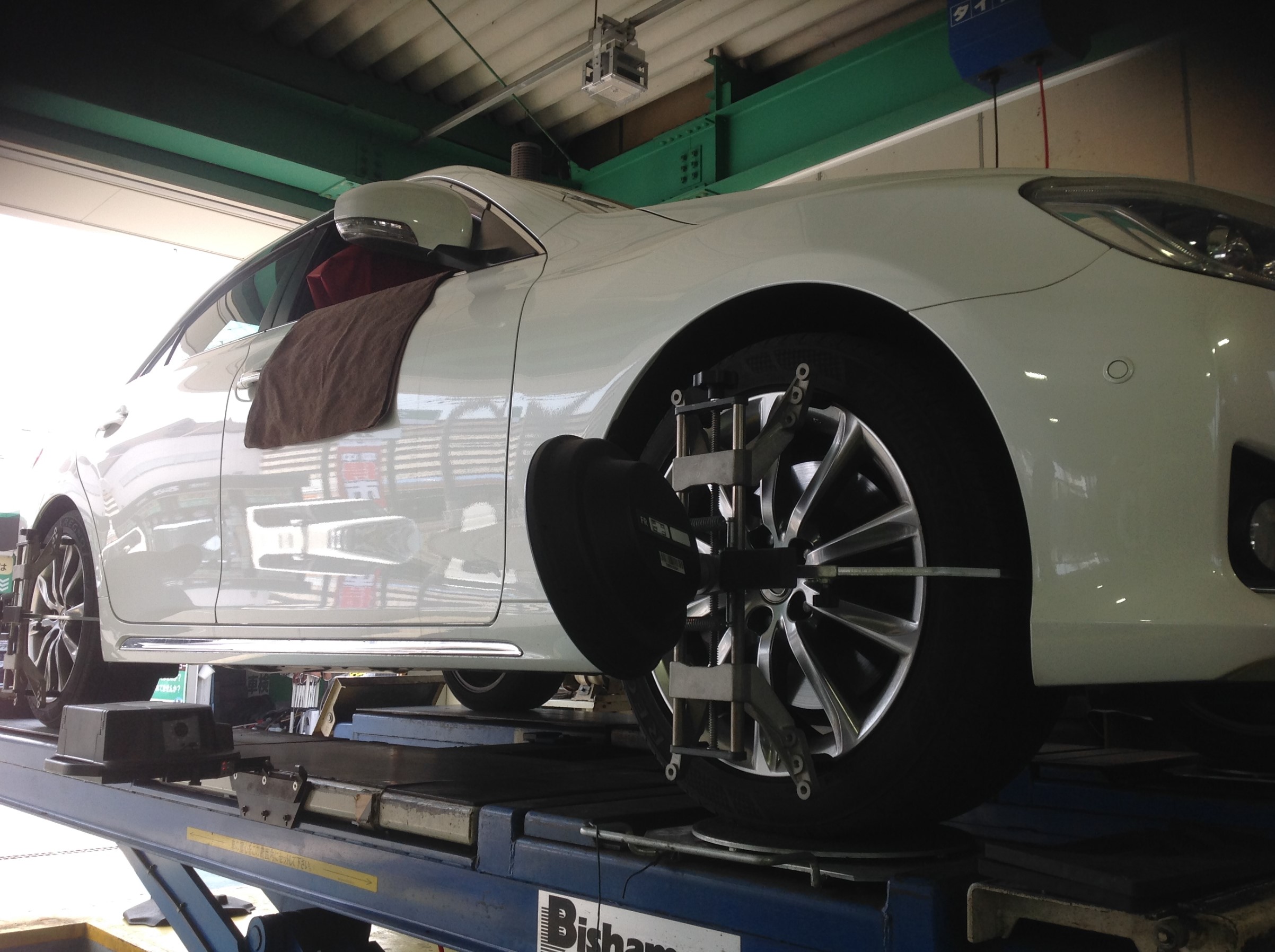 ☆トヨタ マークX アライメント ポスト 2019年4月7日 四日市市、菰野町周辺にお住まいの皆様、こんにちは! 四日市のタイヤ専門店 タイヤ館生桑です! -------------------------------------------- 3D4輪トータルアライメント タイヤ交換時はアライメントチェックで、 タイヤとおクルマの性能を引き出しましょう! 今回は、定期的な測定&調整です。 担当:丹羽