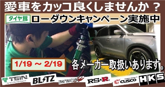 四日市市、菰野町周辺にお住まいの皆様、こんにちは!四日市のタイヤ専門店 タイヤ館生桑です! 今年も足回りキャンペーンを開催します! 1月19日~2月19日までの1か月間の期間 足回りのご相談もお気軽にご来店ください! 春に向けて、お車のドレスアップ!!