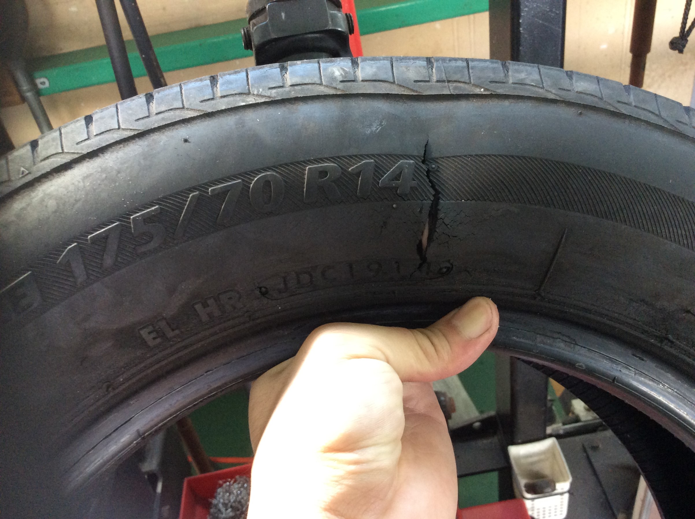 タイヤの横を当ててしまうと