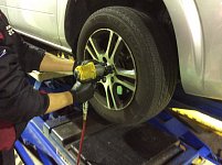 四日市市、菰野町周辺にお住まいの皆様、こんにちは! 四日市のタイヤ専門店 タイヤ館生桑です! 本日の作業の一幕です。 ラフェスタの脱着作業です。