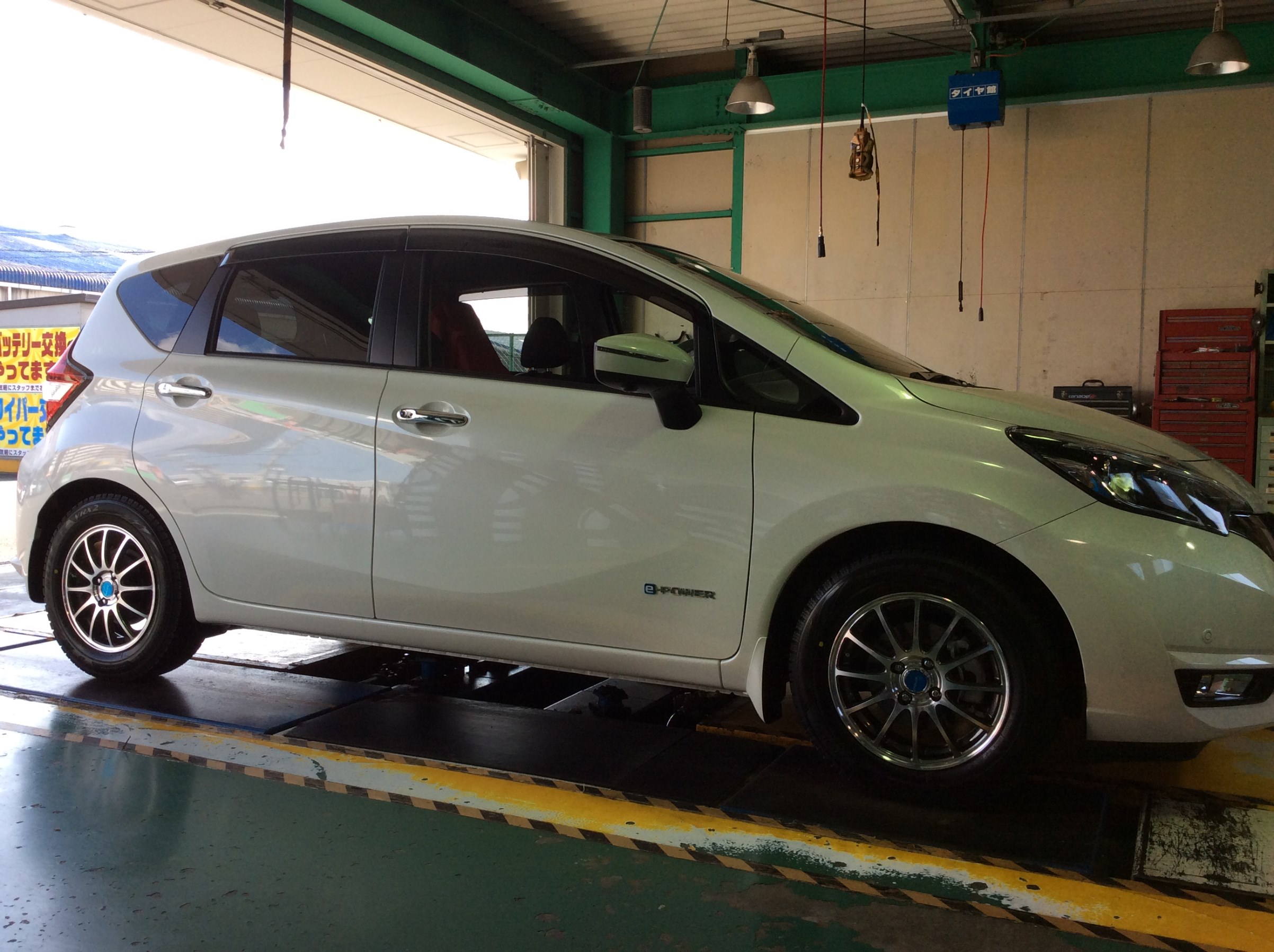 当店のHPをご覧いただきありがとうございます。 本日の入庫車輌はニッサン ノートです。 サービス事例にてスタッドレスタイヤ交換をご紹介してます。 是非ご覧ください!!