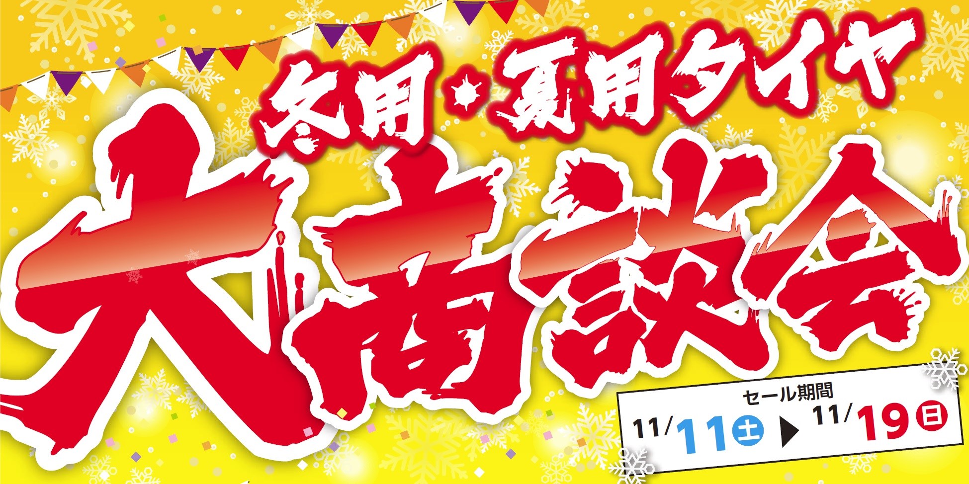 2017年11月11日(土)~11月19日(日)の期間 セール開催決定! 毎日、スタッドレスタイヤの装着が多くなっています。 いざ付けようと思ったら溝が無い、ということも多いです。 一度、タイヤがまだ使えるかチェックしましょう! 買い替えが必要な場合は、ぜひご相談ください!