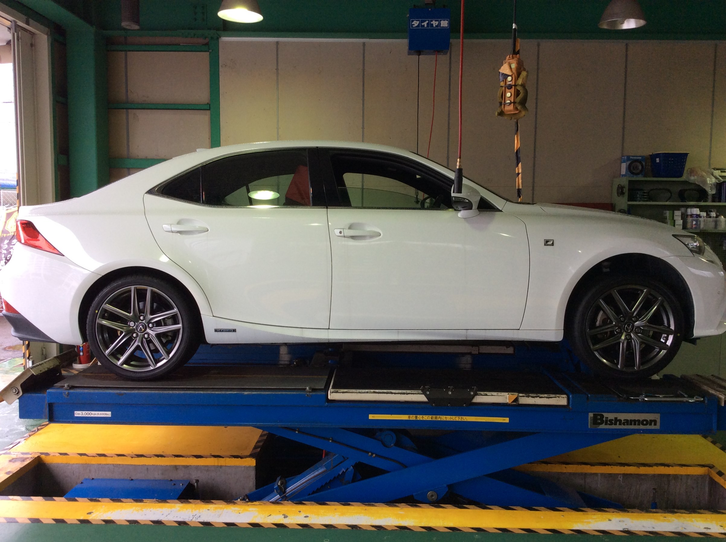 当店のHPをご覧いただきありがとうございます。 本日の入庫車輌はレクサス IS Fスポーツです。 サービス事例にてタイヤ交換をご紹介してます。 是非ご覧ください!!