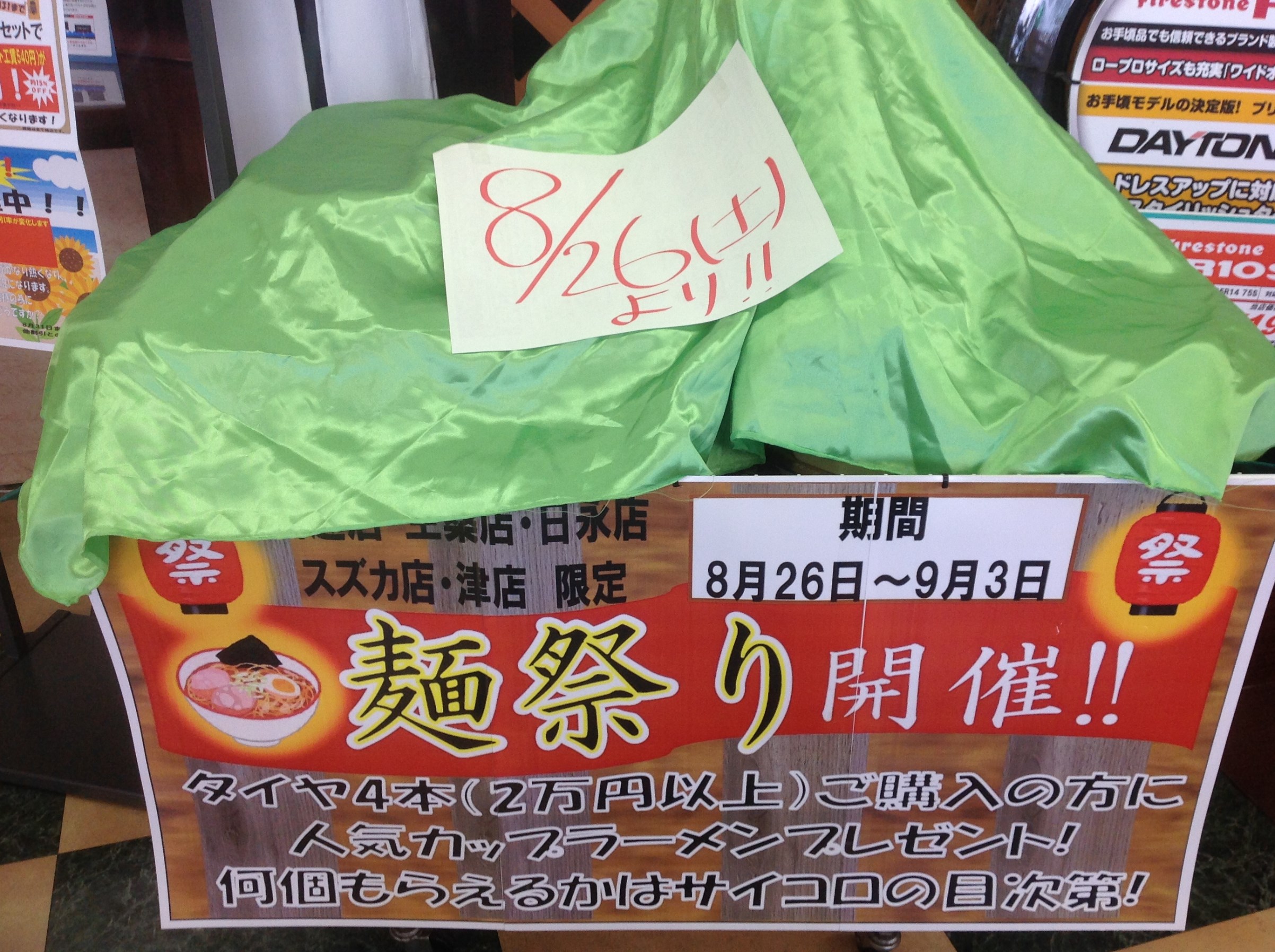 四日市市、菰野町周辺にお住まいの皆様、こんにちは! 四日市のタイヤ専門店 タイヤ館生桑です! 今月26日からイベントが始まります。 タイヤ4本(2万円以上)ご購入のお客様が対象となります。 何個当たるかはお客様の運次第♪ スタッフ一同ご来店を心よりお待ち申し上げます。