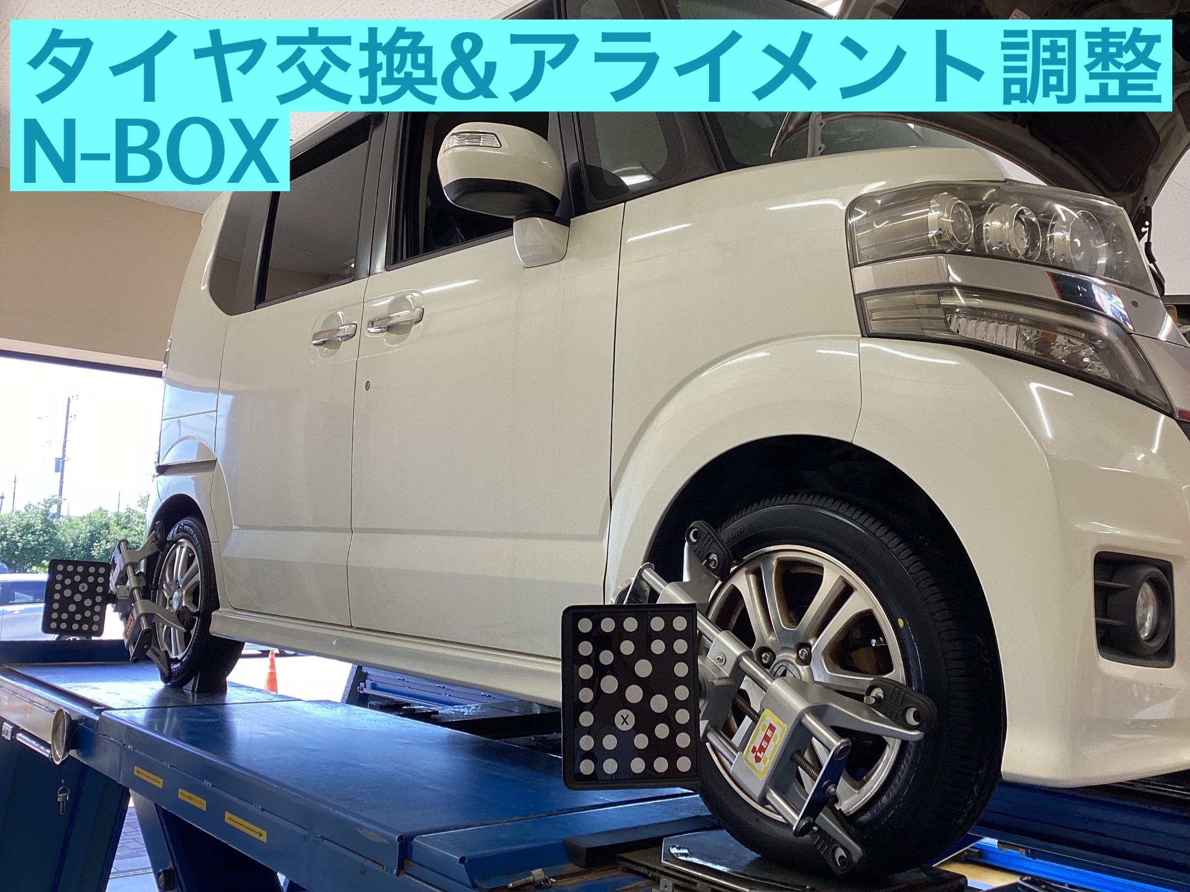 今回は、先日作業したN-BOXのタイヤ交換・アライメント調整のご紹介をいたします。