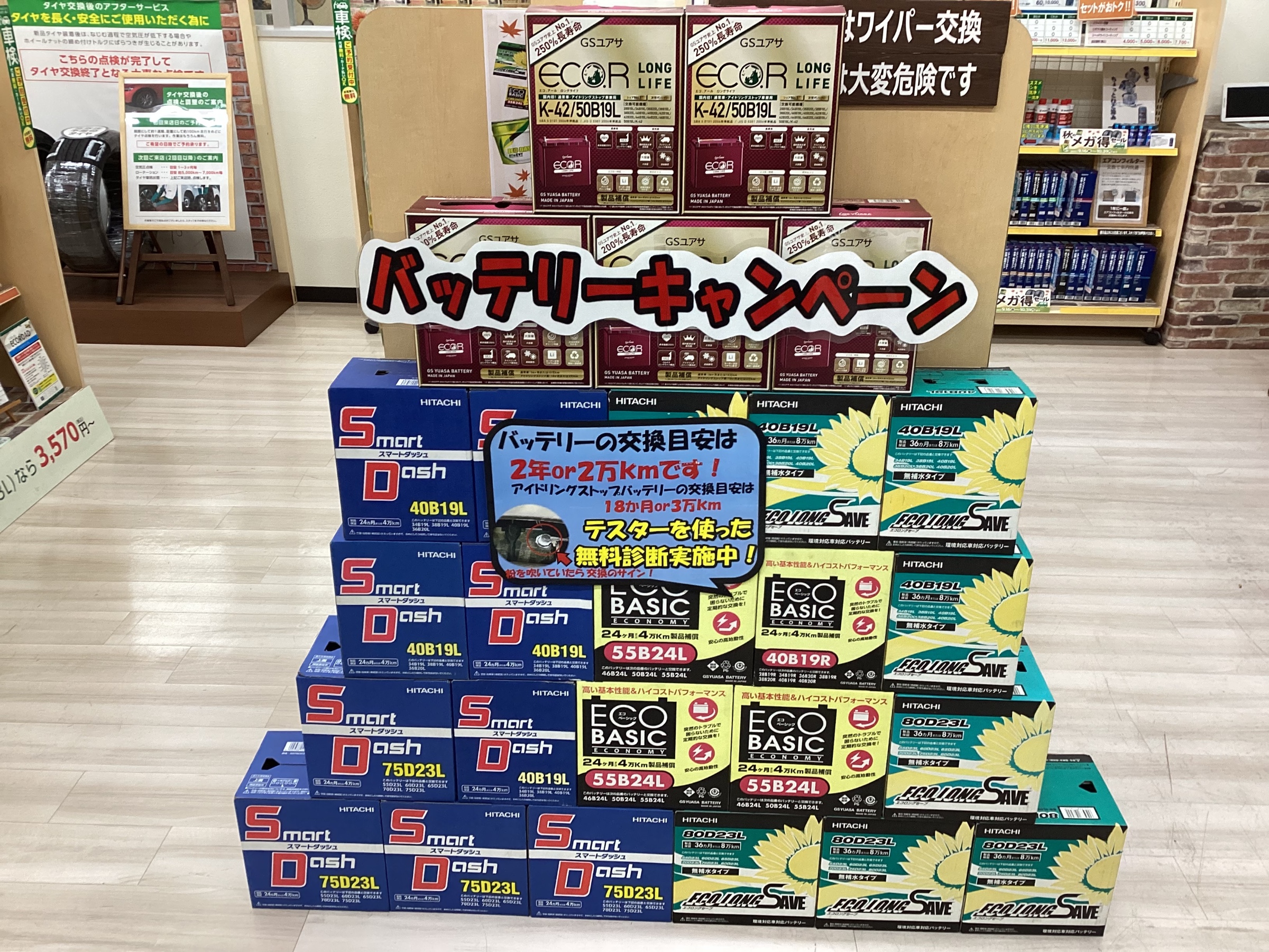 只今当店ではバッテリーのキャンペーンも開催しているので、