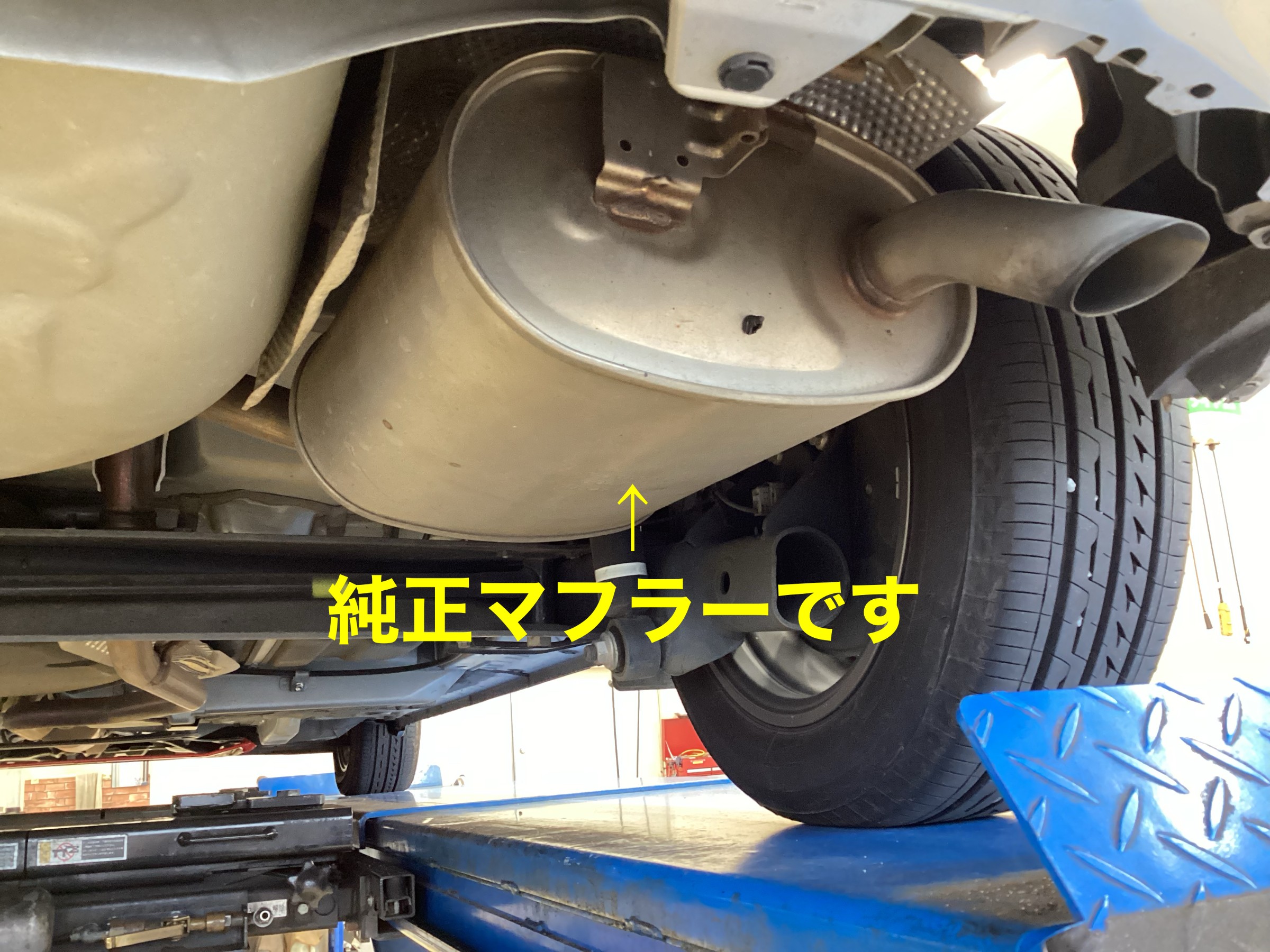 こんな感じに装着されている純正マフラーを、、、