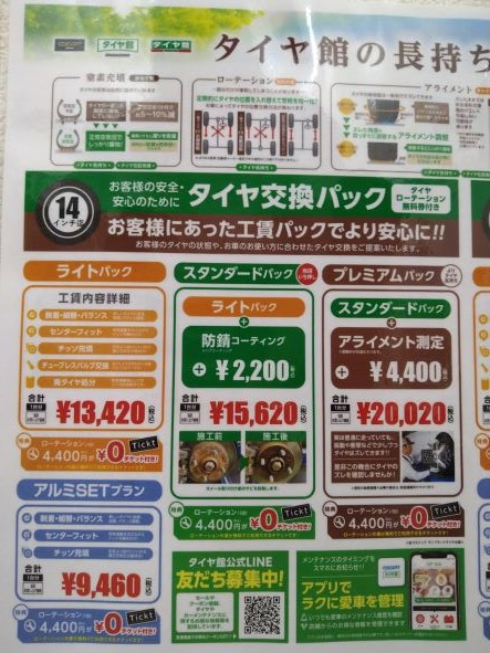 タイヤサイズにより料金は変わりますのでよろしくお願いします。