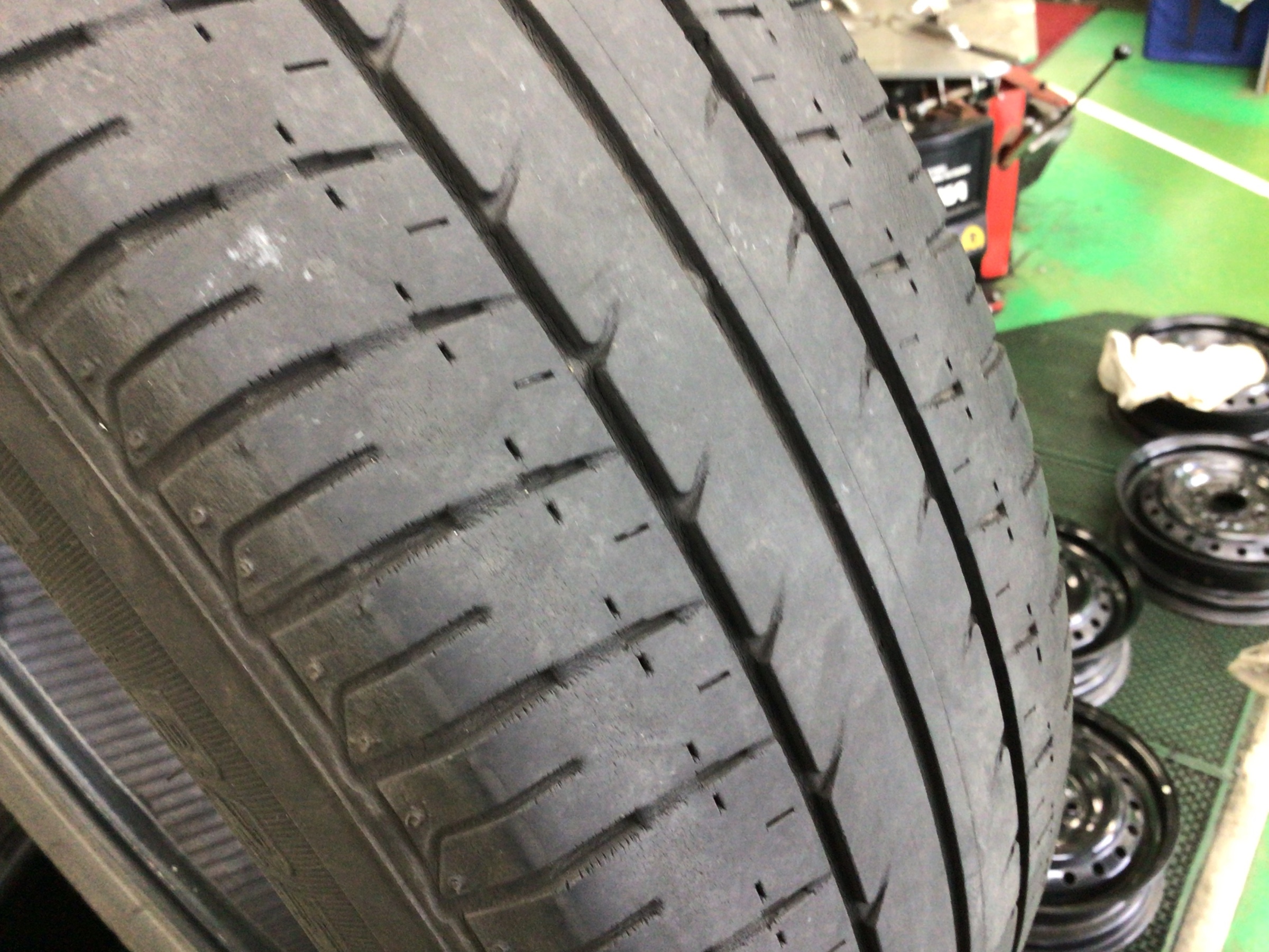 使用年数経過によるタイヤクラック(ひび割れ)とタイヤ残溝が少なくなってきたので