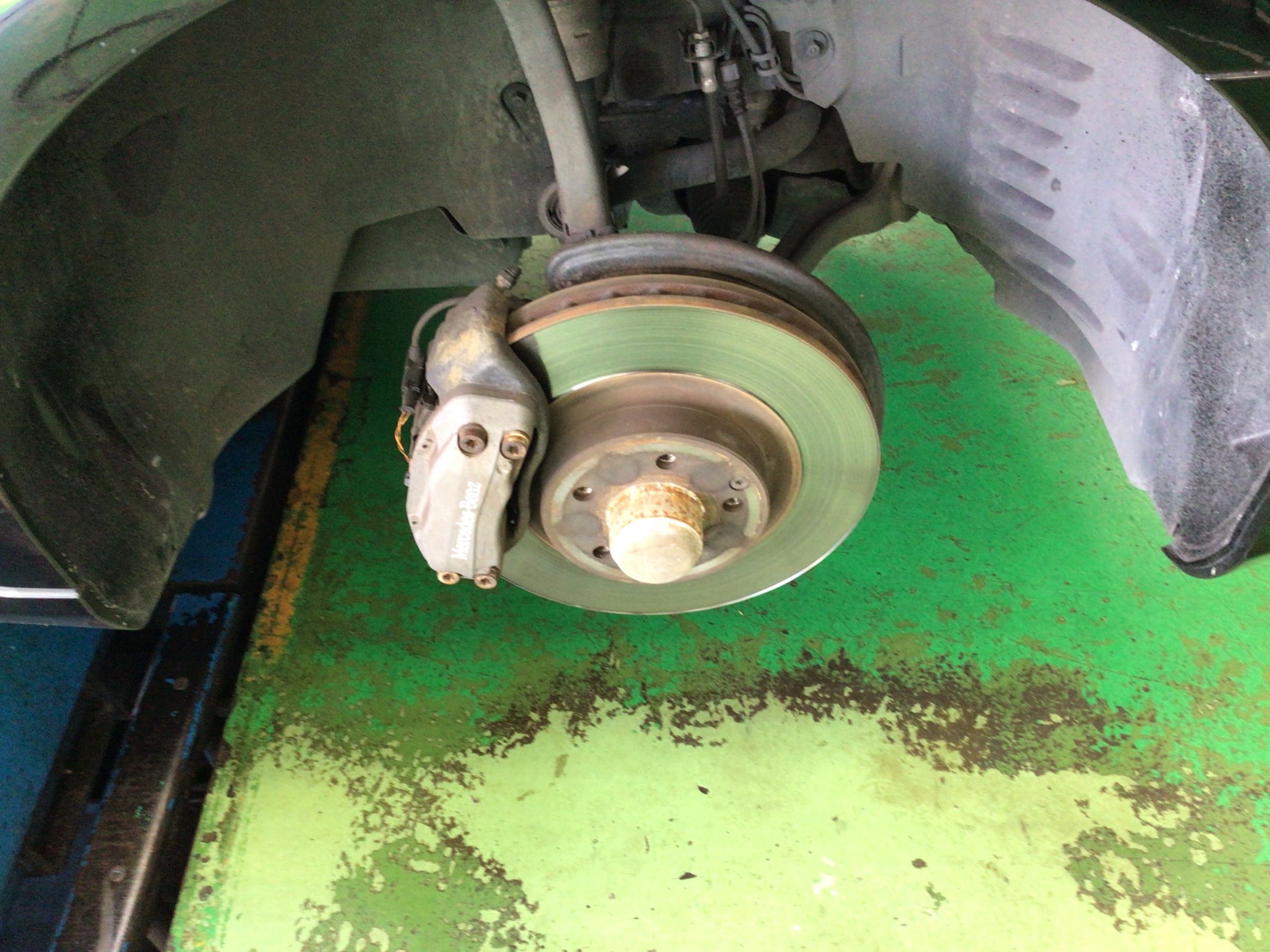 お車をリフトアップしてタイヤのエアー・残溝・摩耗状態等の点検を行うと・・・