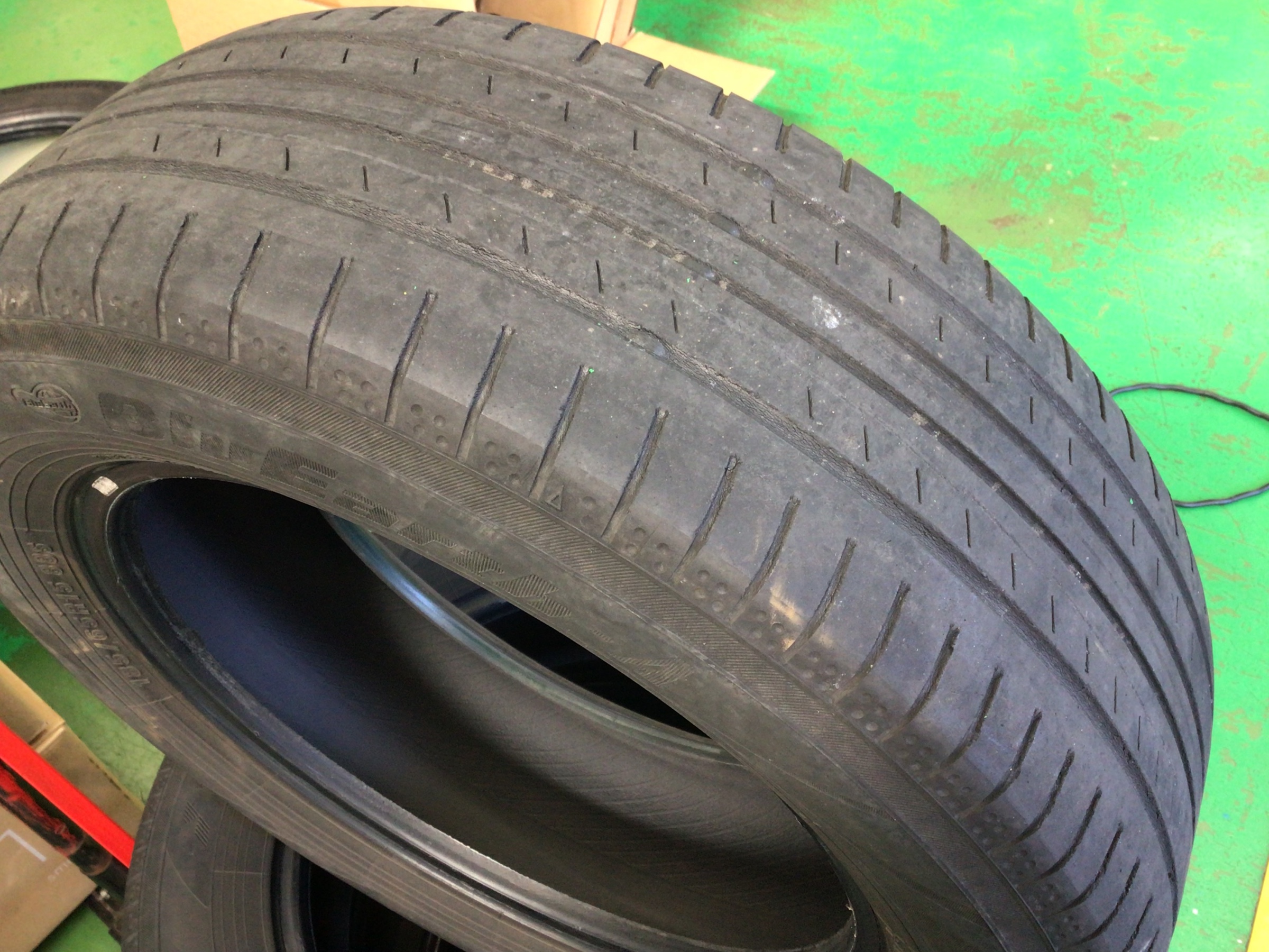 タイヤのひび割れと残溝が少なくなってきたので安全の為にタイヤ交換となりました。