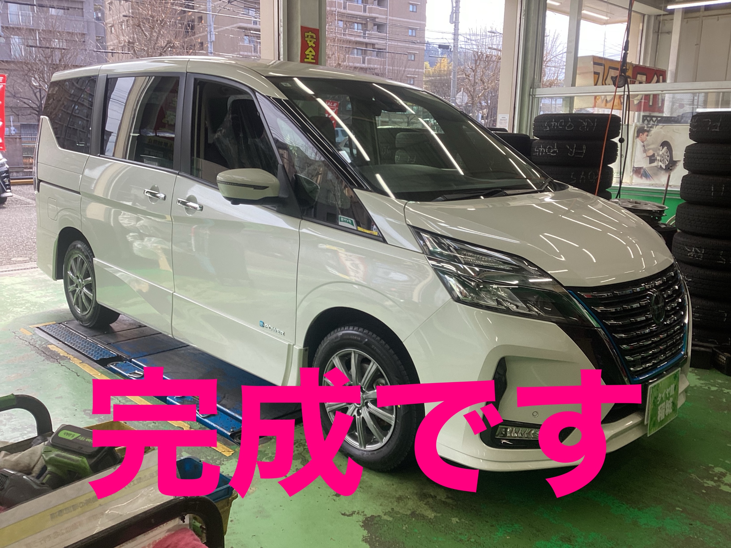 セレナにスタッドレスタイヤ取付