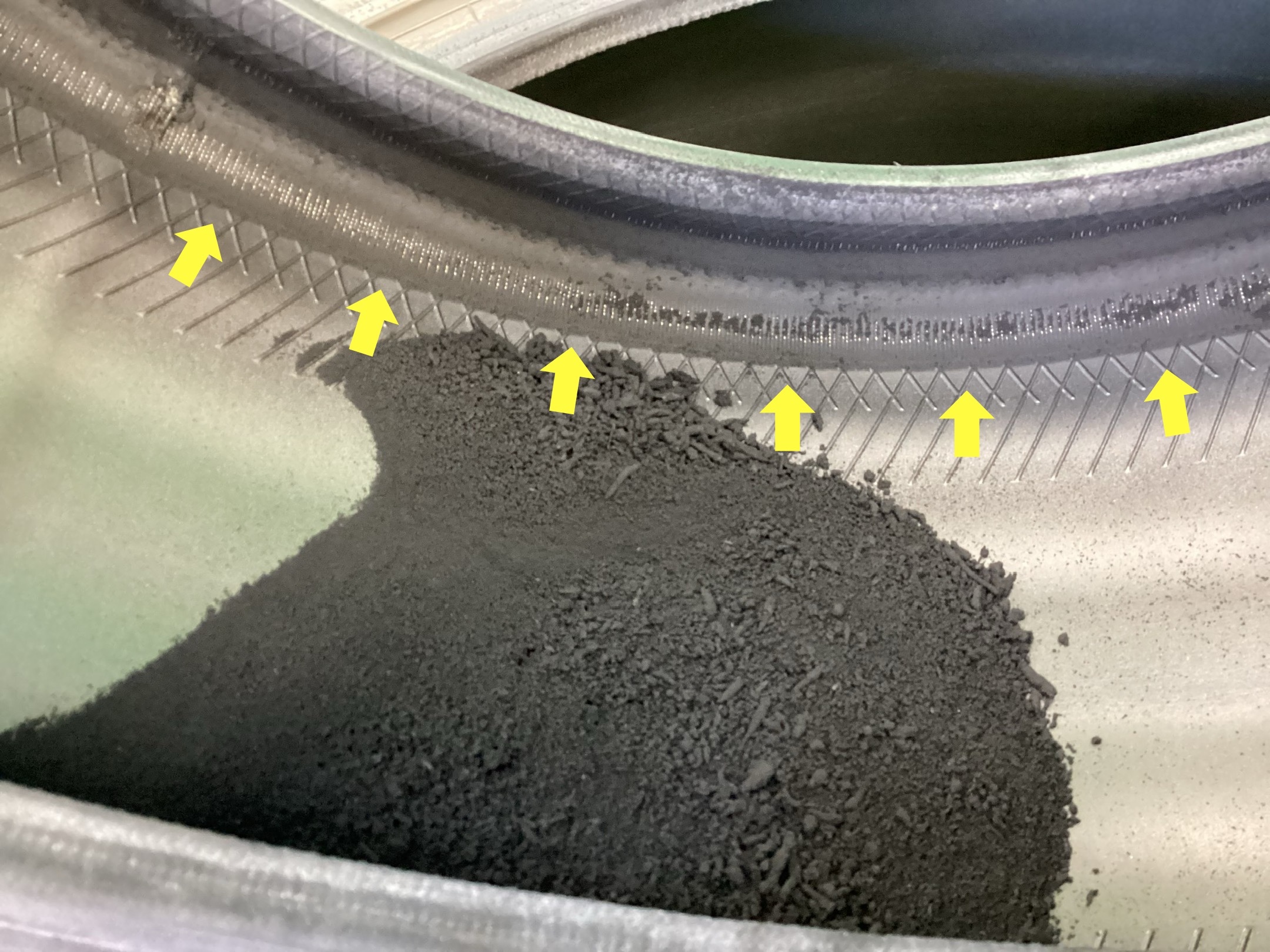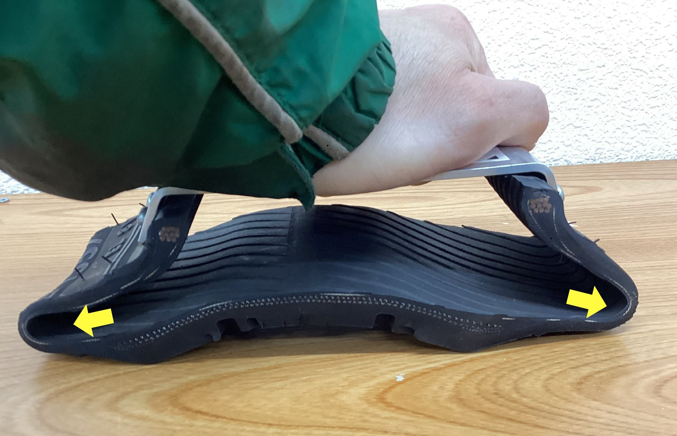 タイヤの形状を保つ為の構造物まで擦り切れてしまい、