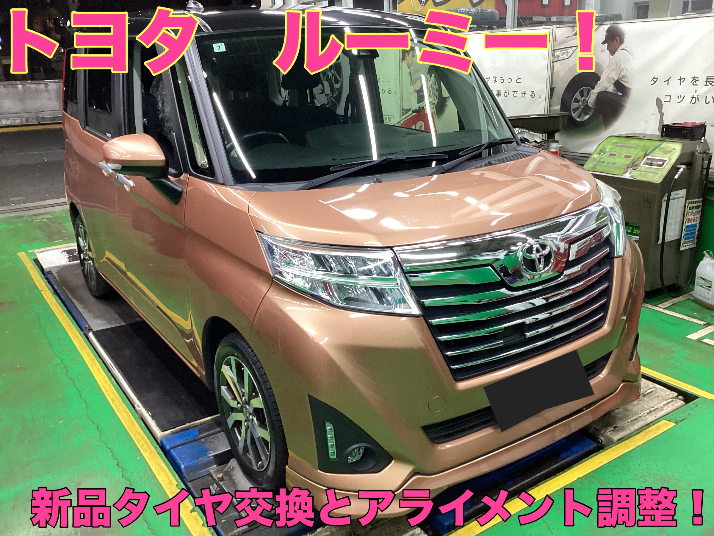 トヨタ ルーミー 新品タイヤ交換とアライメント調整!
