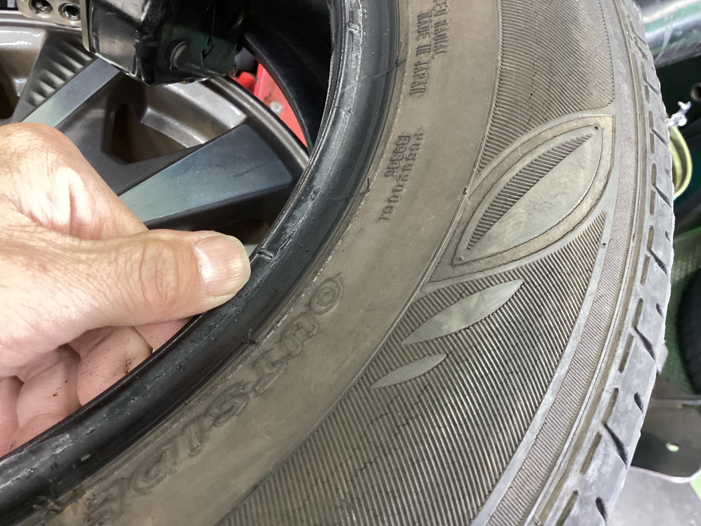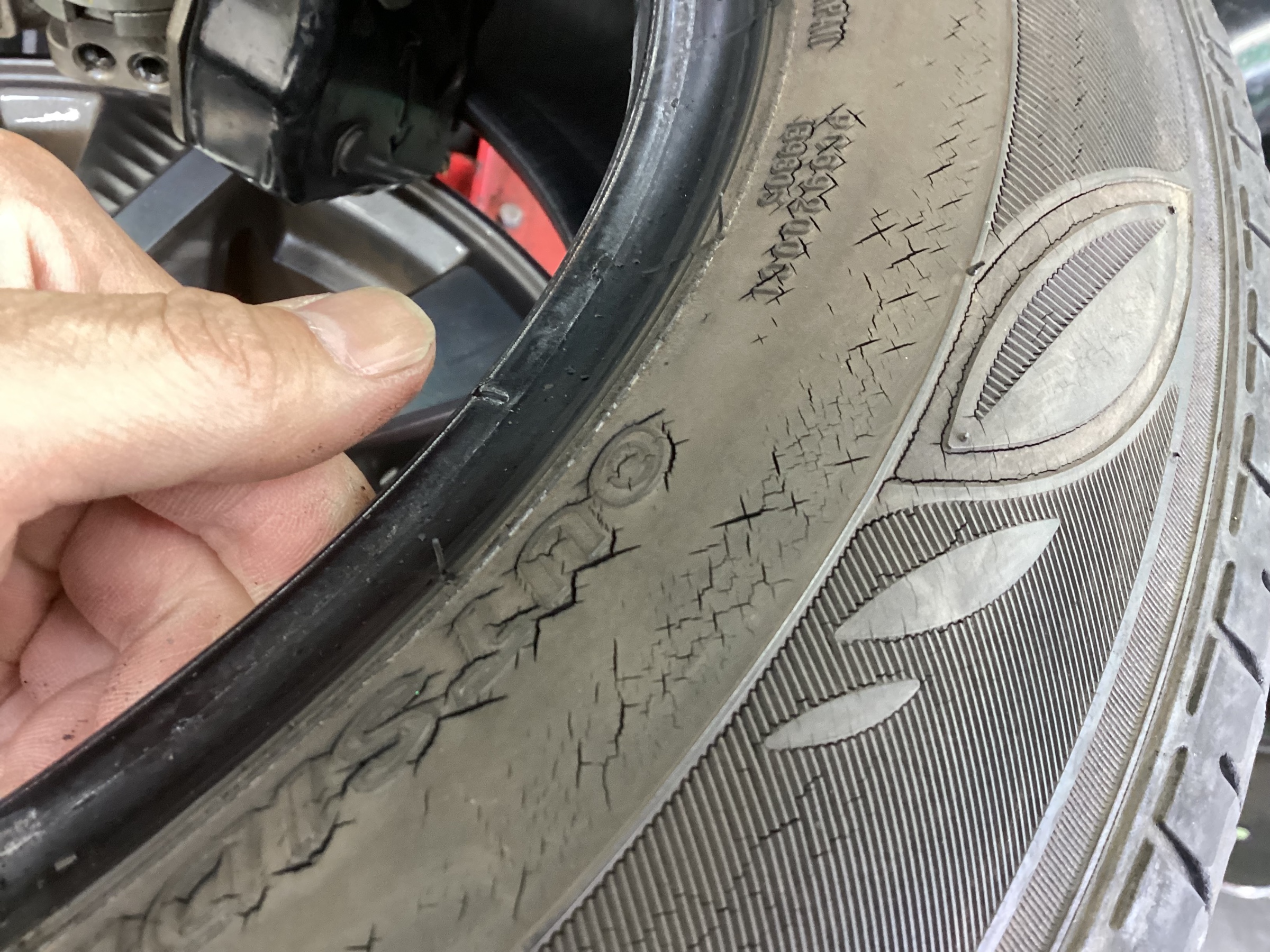 使用していたタイヤは、ひび割れがひどく使用するには非常に不安な状態でした。