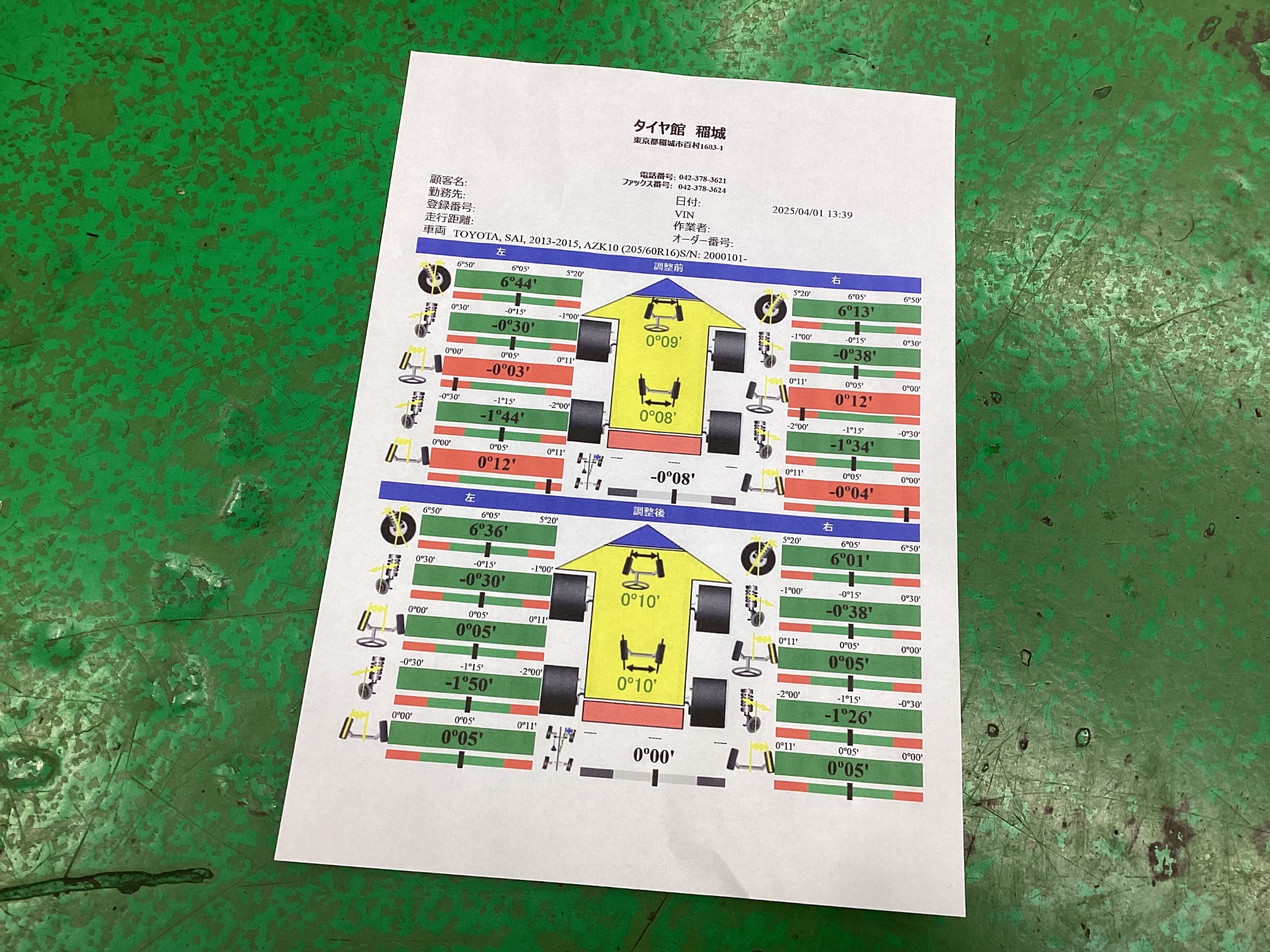 前後トー角がずれていました。
