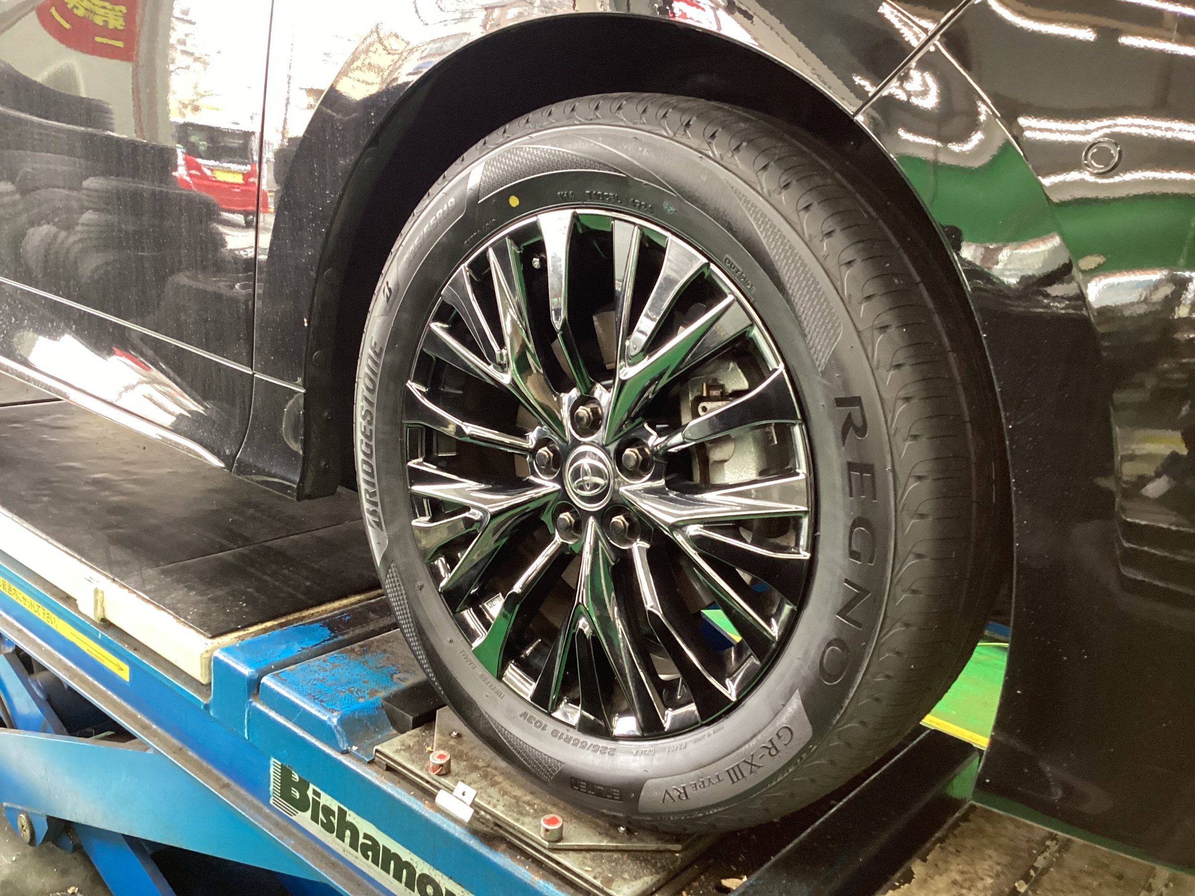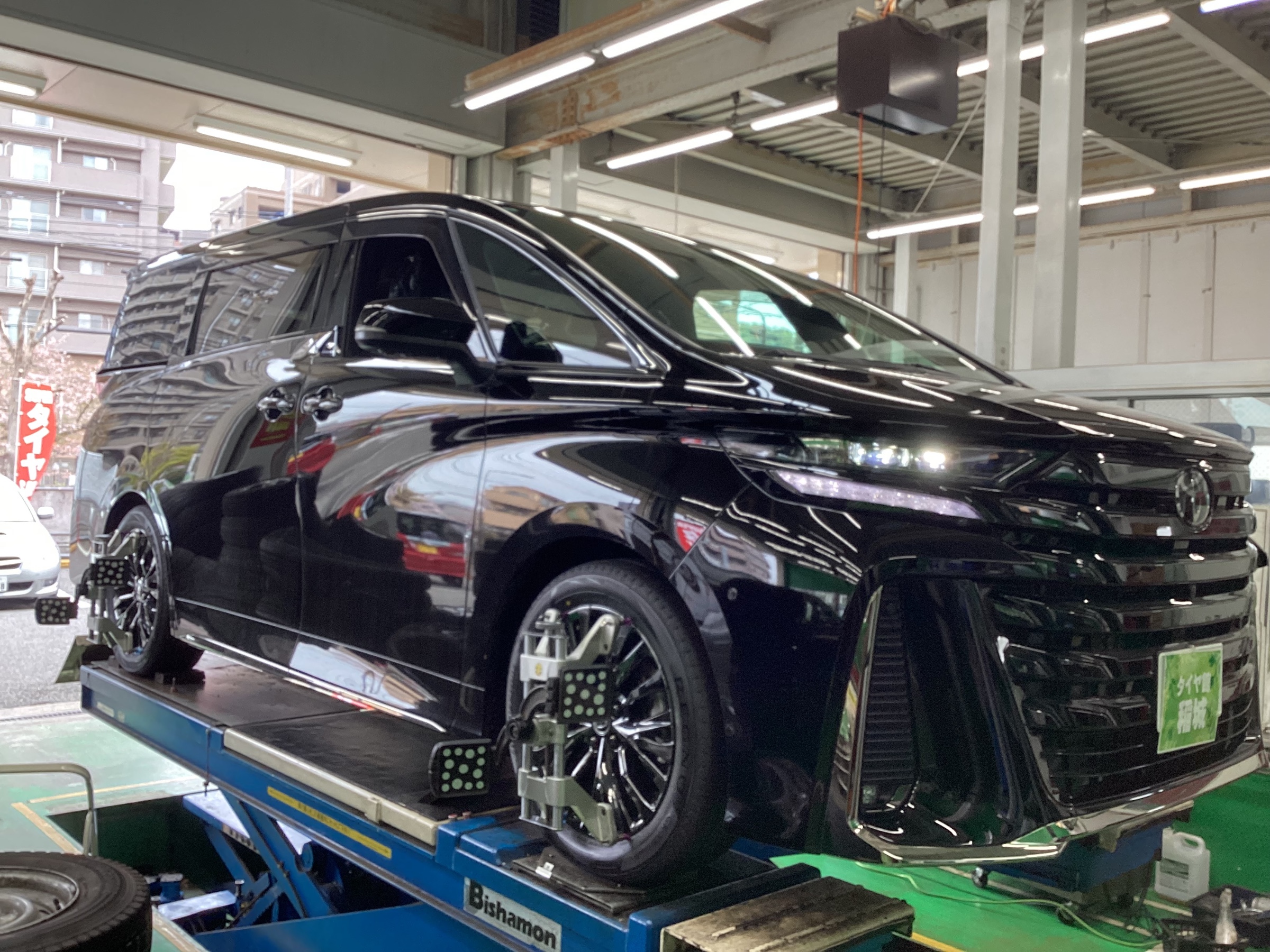 トヨタ ヴェルファイア 新品タイヤ交換とアライメント調整!