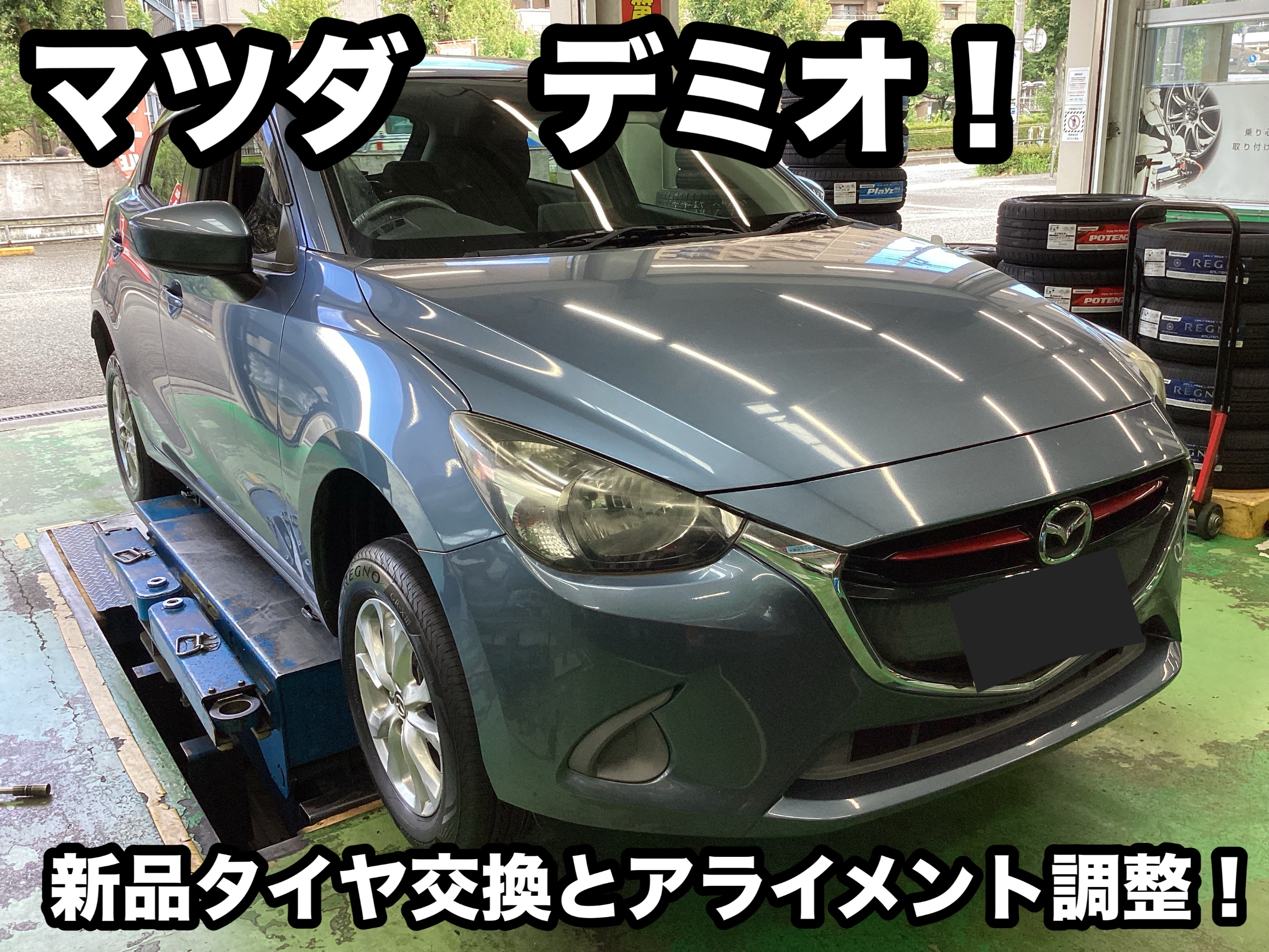 マツダ デミオ 新品タイヤ交換とアライメント調整!
