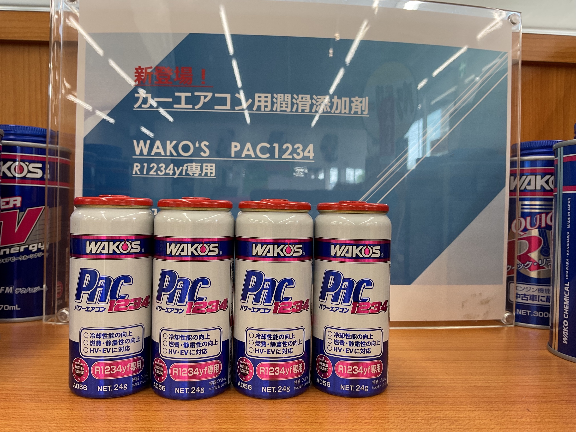 なお、WAKO'S PAC PLUSはR-134aというエアコンガス対応となっており、年式の古いおクルマに使われていたR12や、最新モデルに採用が始まったHFO-1234yfには対応していません。詳細につきましては、当店にご相談くださいね。