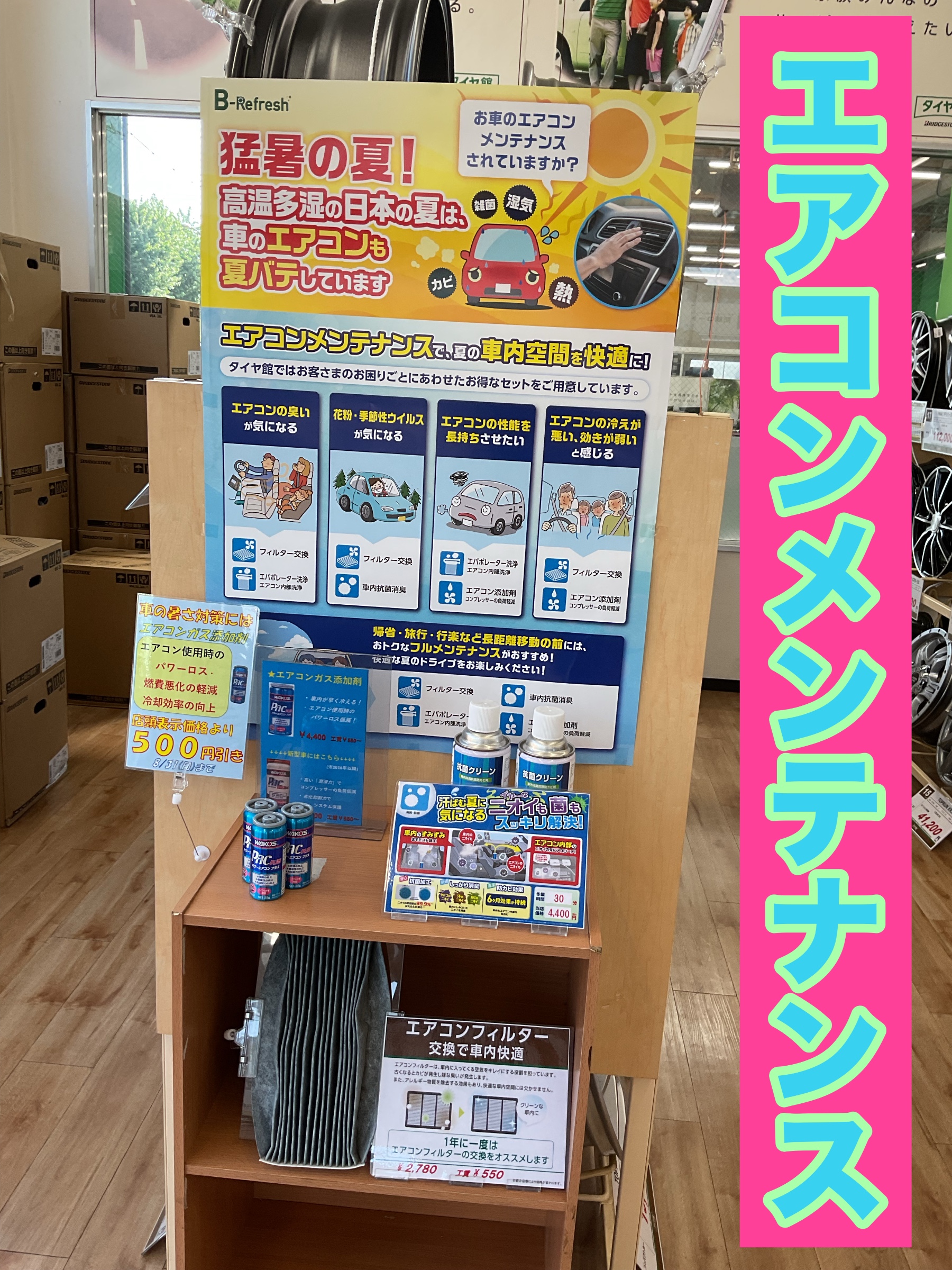 エアコンメンテナンスしていますか? ポスト 2025年8月17日 毎日暑いですね〜 そんな暑い日も車の中はエアコンが効いて快適ですよね♪ そんな快適にしてくれているエアコンをメンテナンスしませんか! 当店では快適メニューとして、 エアコン添加剤 エバポレータ洗浄 エアコンフィルター交換 車内除菌 の作業が可能です! まだまだ暑い日が続くようなので、 メンテナンスしてあげてくださいね。 気になる方はお問い合わせください♪ タイヤ館 稲城 住所:206-0804東京都稲城市百村1603-1 電話番号: 042-378-3621 相談予約