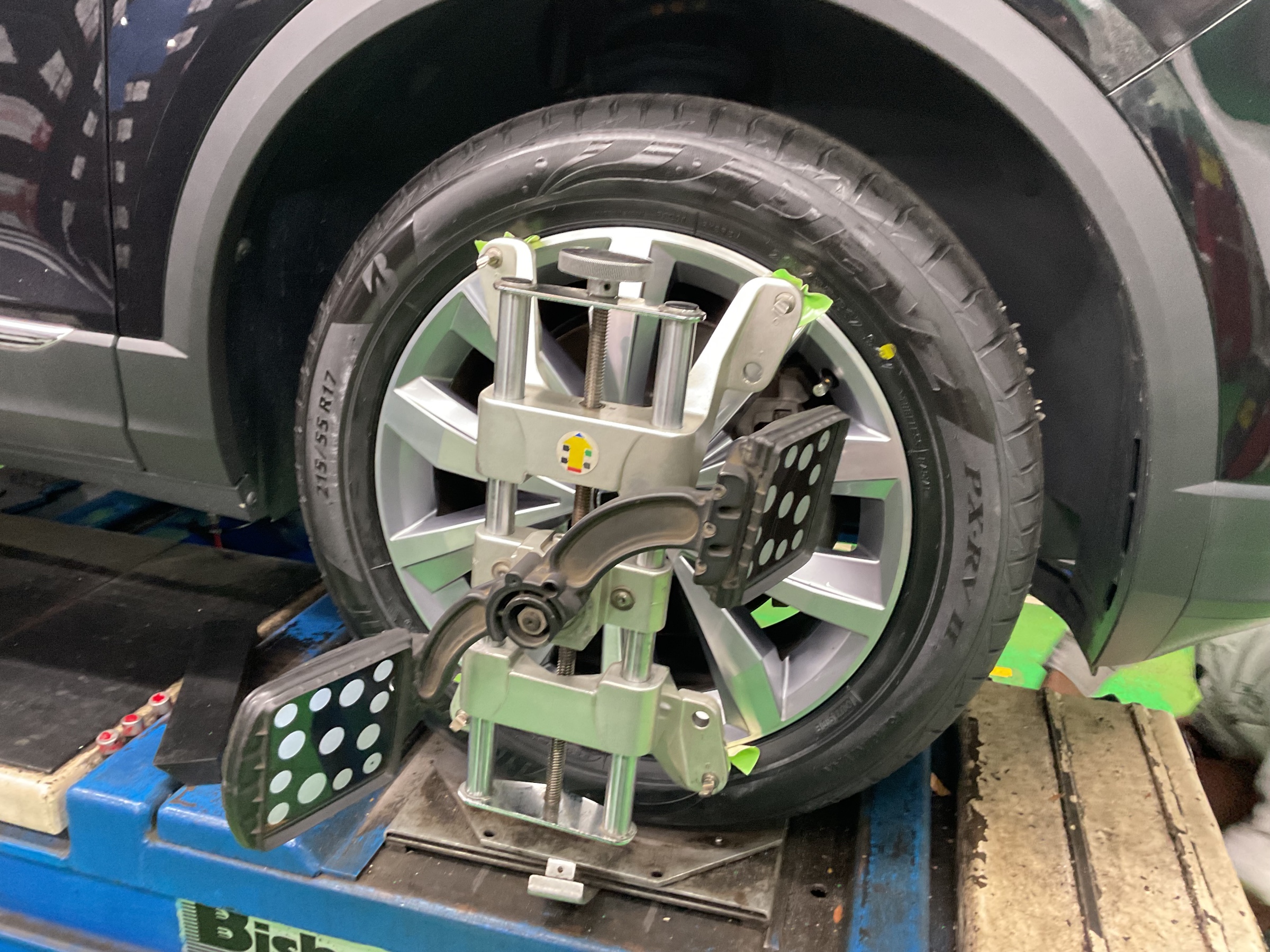 アライメント調整で、前輪の向きを基準値に調整して、作業完了です!!
