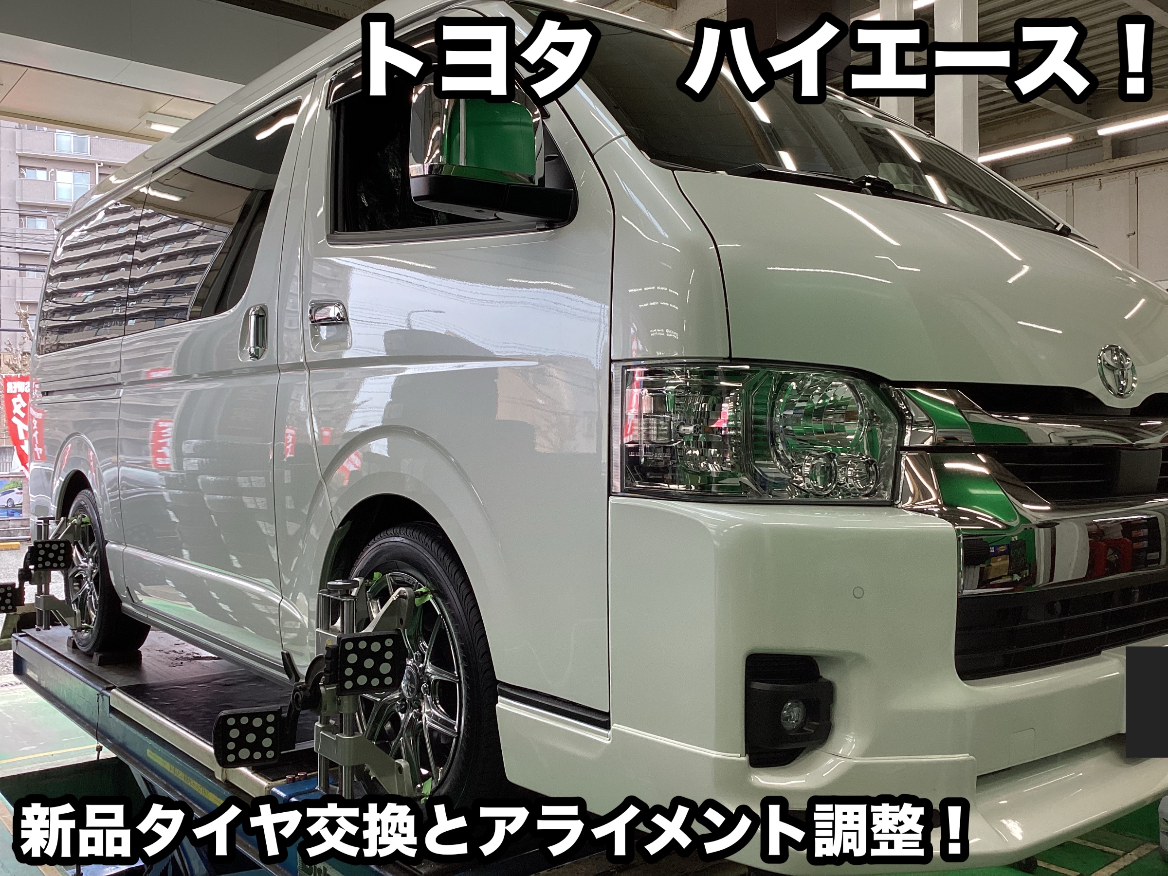 トヨタ ハイエース 新品タイヤ交換とアライメント調整!
