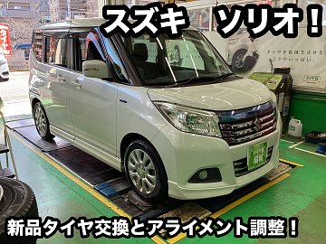 スズキ ソリオ 新品タイヤ交換とアライメント調整!