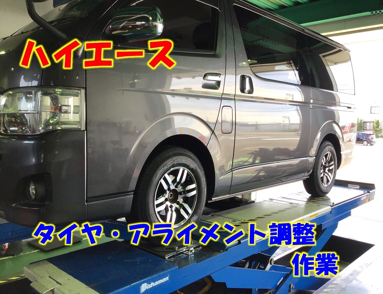 本日はハイエースのタイヤ&アライメント作業を紹介いたします