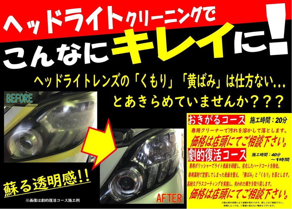 当店イチオシ「ヘッドライトクリーニング&コーティング」