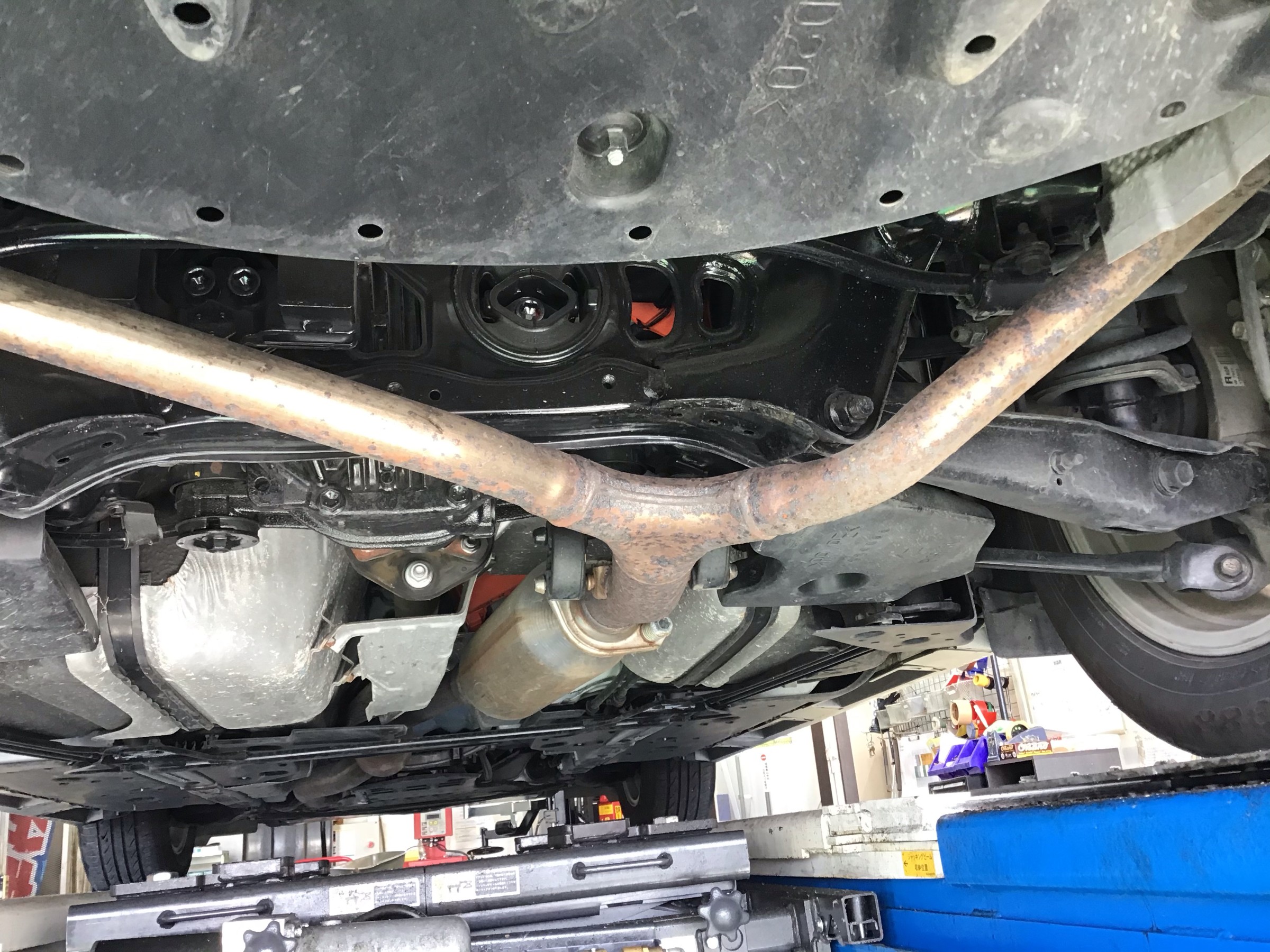 リフトで上げた際にマフラーがかなり錆びていて