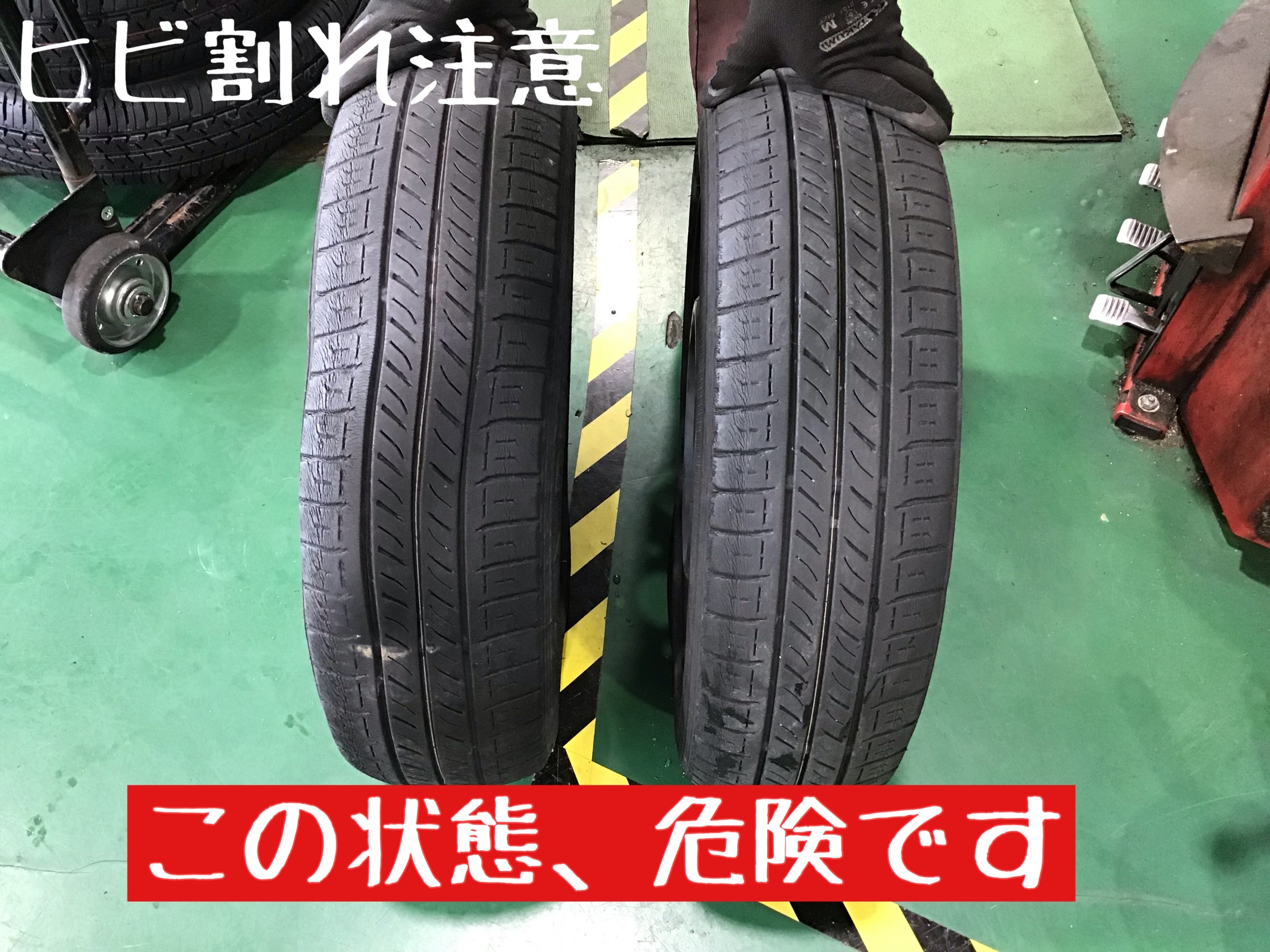 右がひび割れているものの正常に走行できるタイヤで