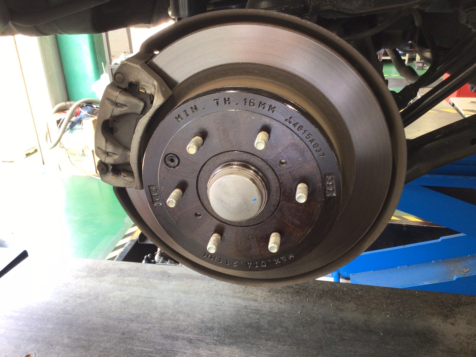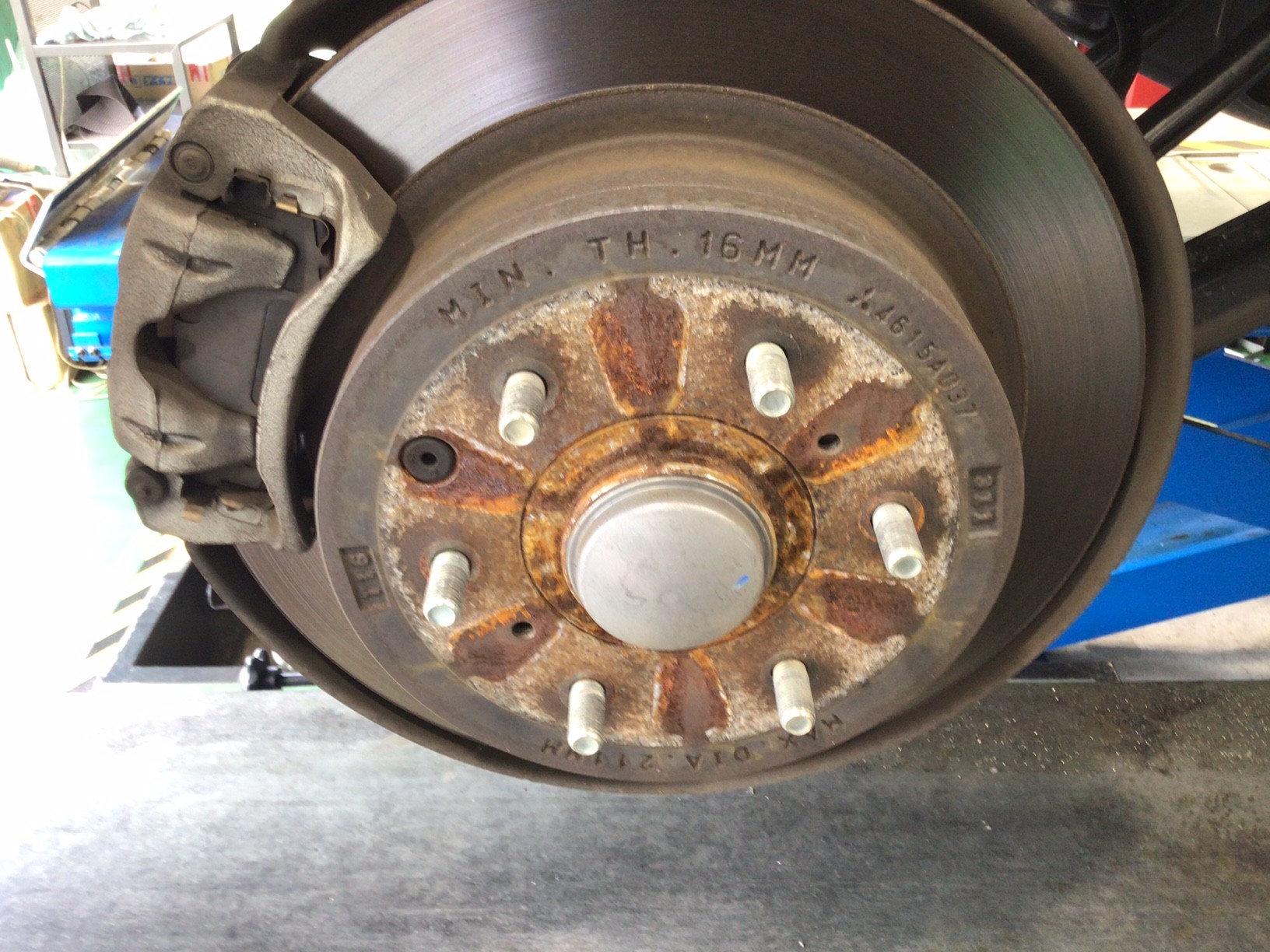 ↓ まずは、純正タイヤ取り外し後 取付面の清掃・防錆作業をします 施工前( ゚Д゚)