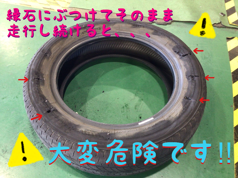 縁石を乗り上げる以外にも、タイヤに釘が刺さり