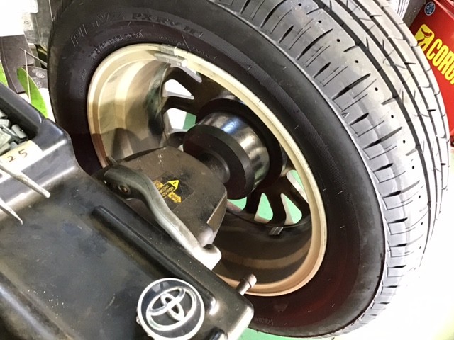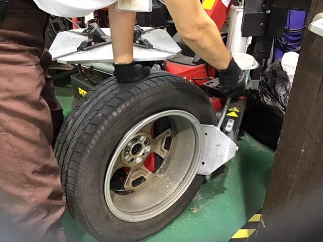 タイヤチェンジャーにタイヤホイールをセットします(^_^)