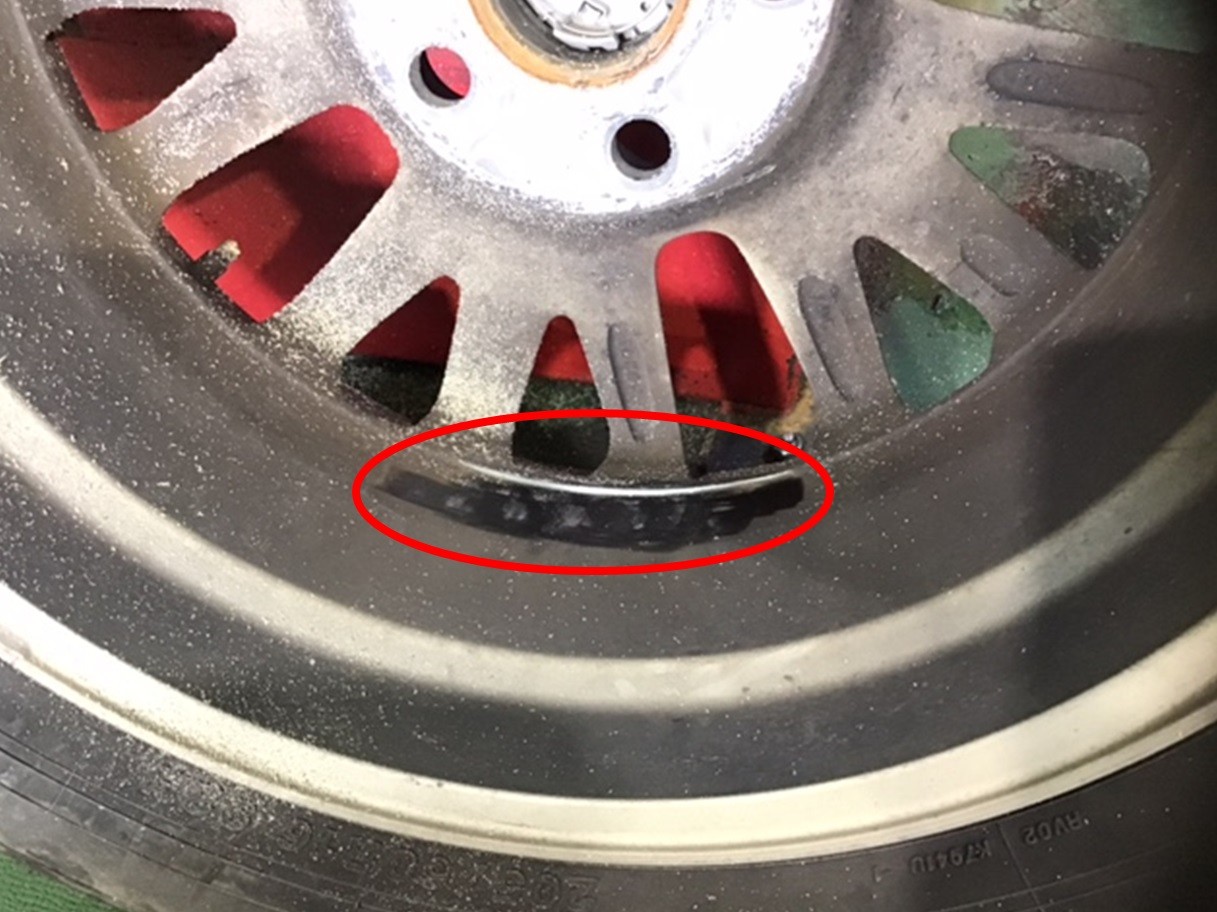 ホイール裏面に張り付いているバランスウエイトを取ります(赤丸部分)