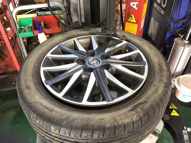まずは、車からタイヤを外し、空気を抜いていきます(^_^)