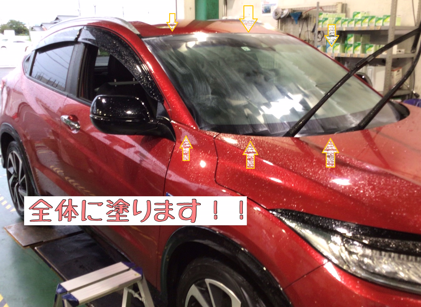 本日は、『ホンダ:ヴェゼル』のガラス撥水コーティング