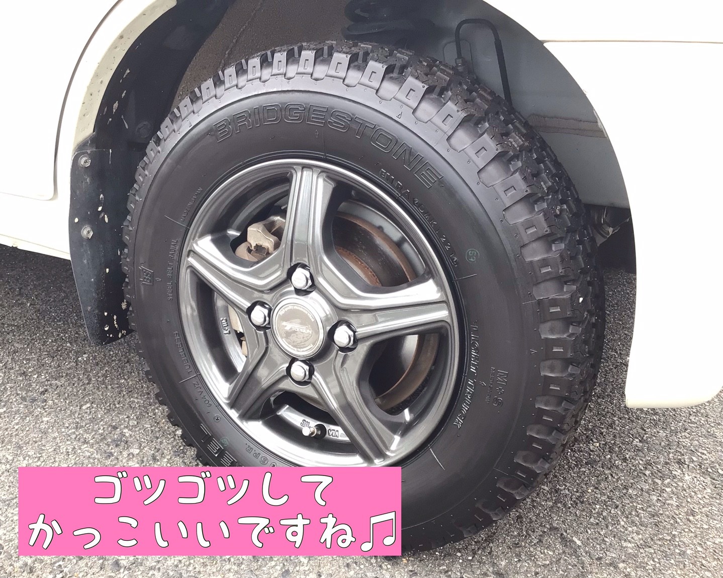 ホイールも黒っぽく、タイヤがごつごつしているので