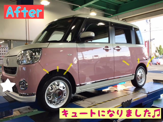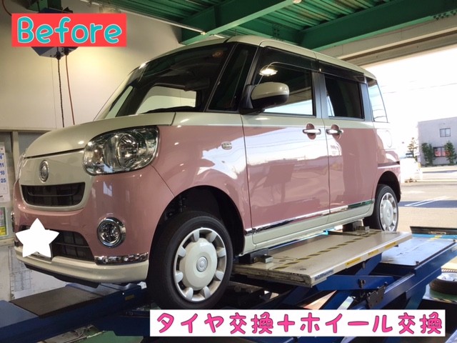 本日は、ムーヴキャンバスのタイヤ+ホイール交換