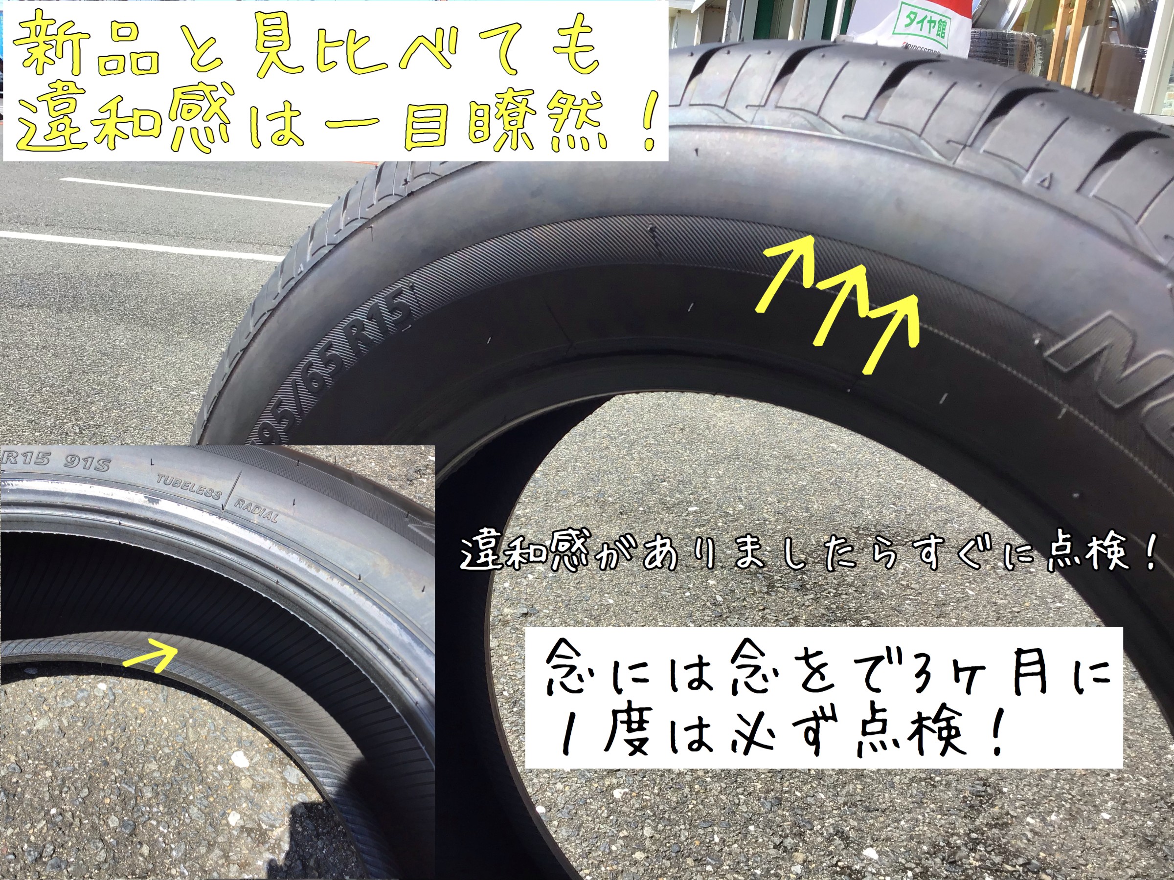 タイヤの空気圧を低く走行しているとタイヤの内部が損傷してしまうことがあります。