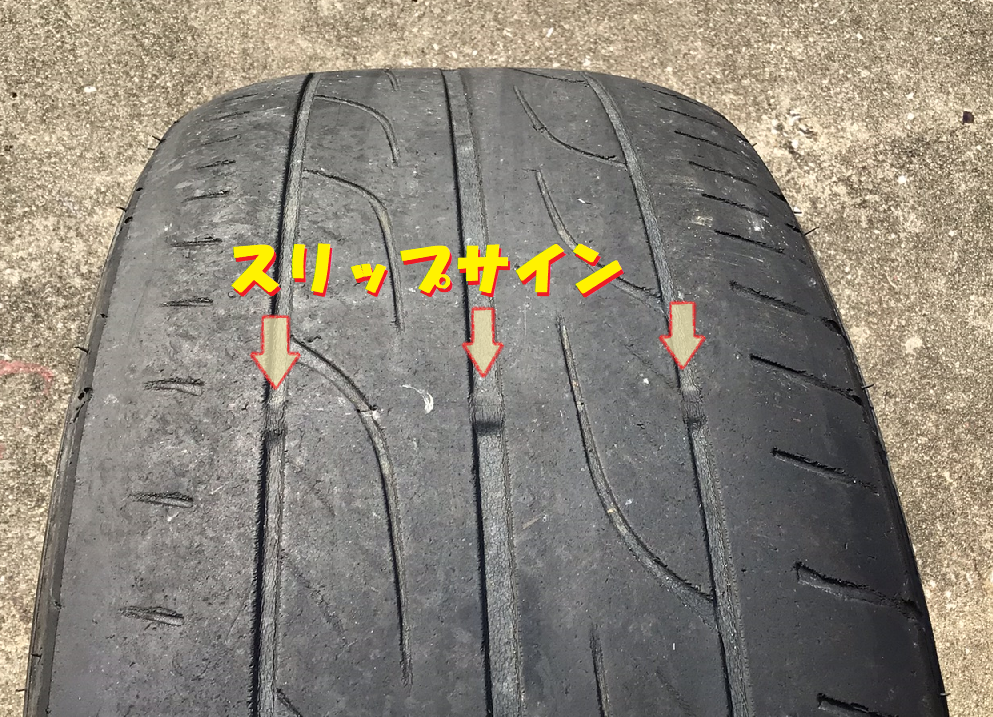 タイヤには、スリップサインという残りの溝の深さ1.6㎜を