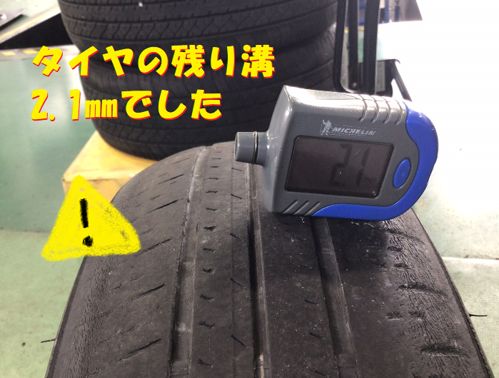 年間15000キロ以上乗られる方で、タイヤの残り溝が2.1㎜でした。
