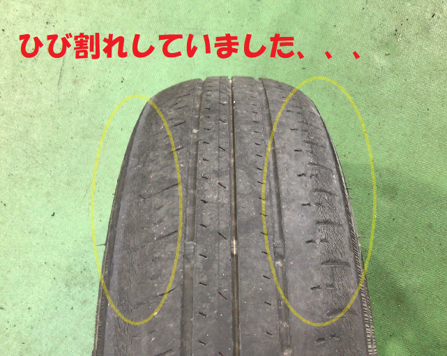 タイヤの側面の両サイドにもひび割れが見え、このまま走行してしまうと、