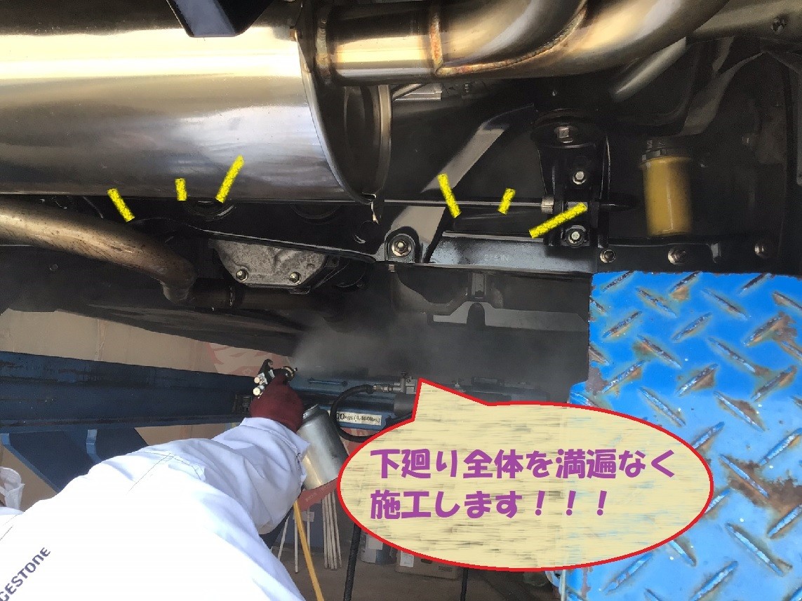 サビやすい部分をタイヤ館 稲沢では、施工剤を塗ります。