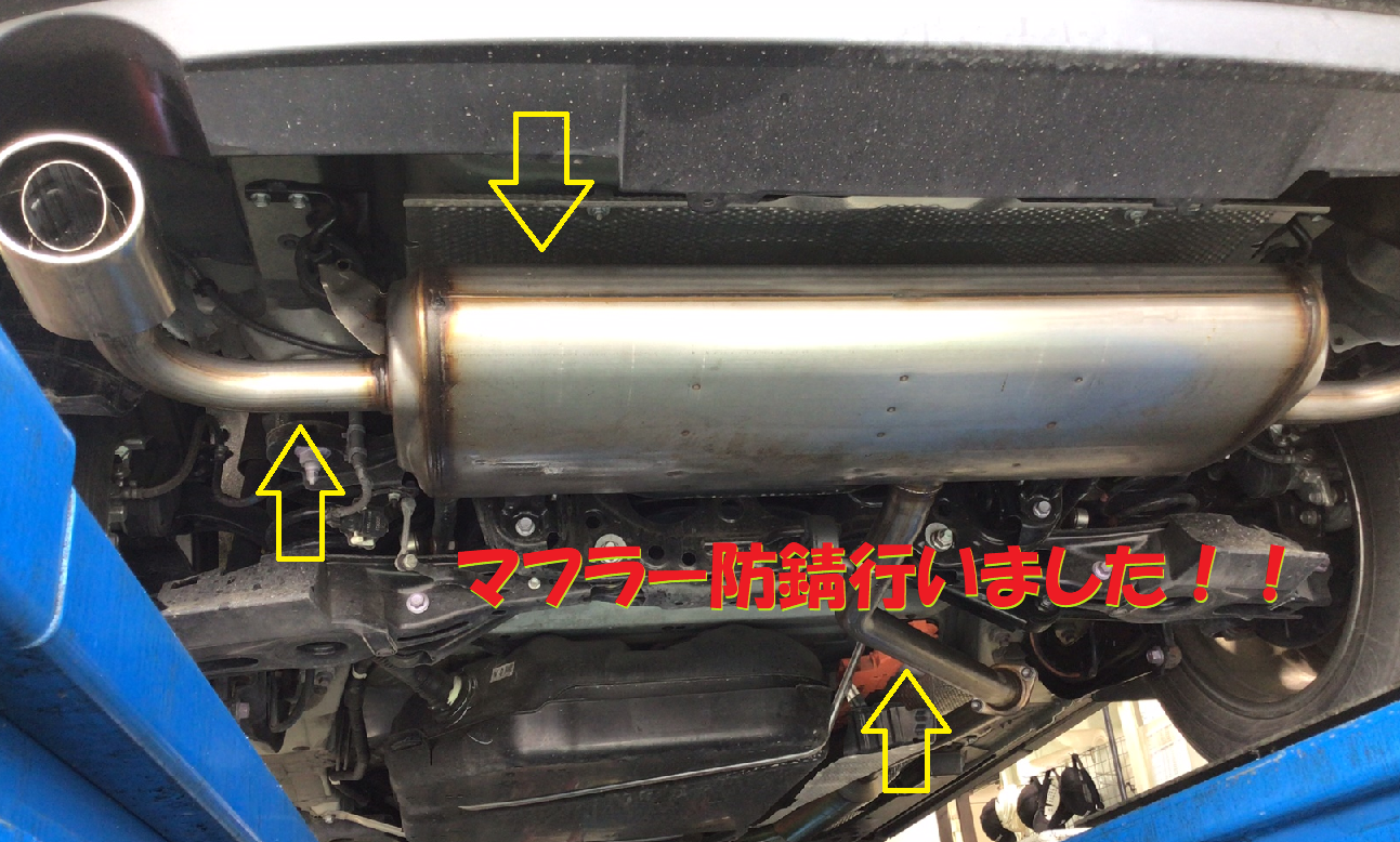 マフラー部分の端の方にサビが少しずつ見えてきました。