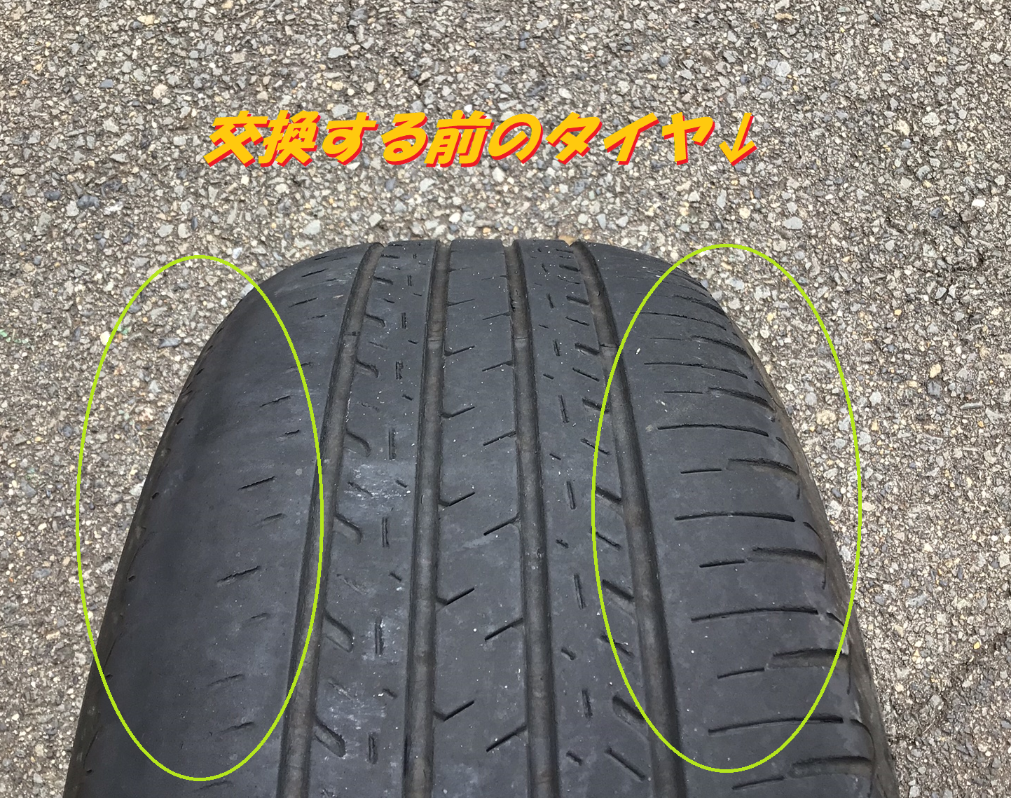 まず、交換前のタイヤと交換する新品タイヤを見比べてみました↓