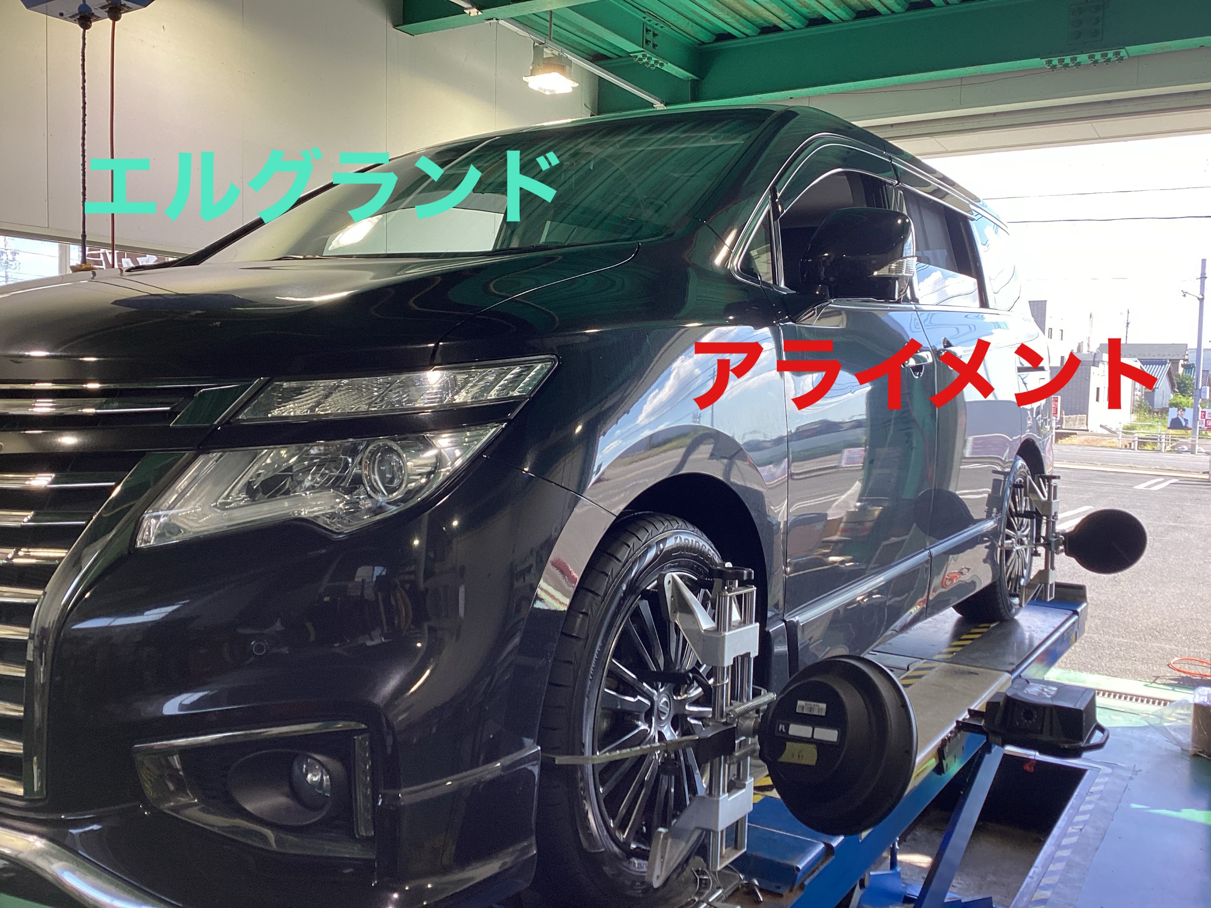 タイヤ交換+アライメント作業 日産エルグランド