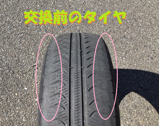 長く履かれていた為、ピンク色で囲ったタイヤの両側が
